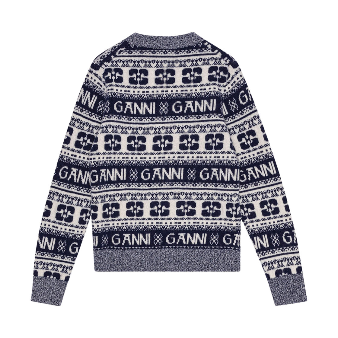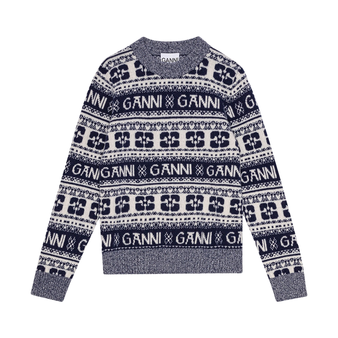 (W) Ganni Logo Wool Mix O-Neck Pullover Sky Captain