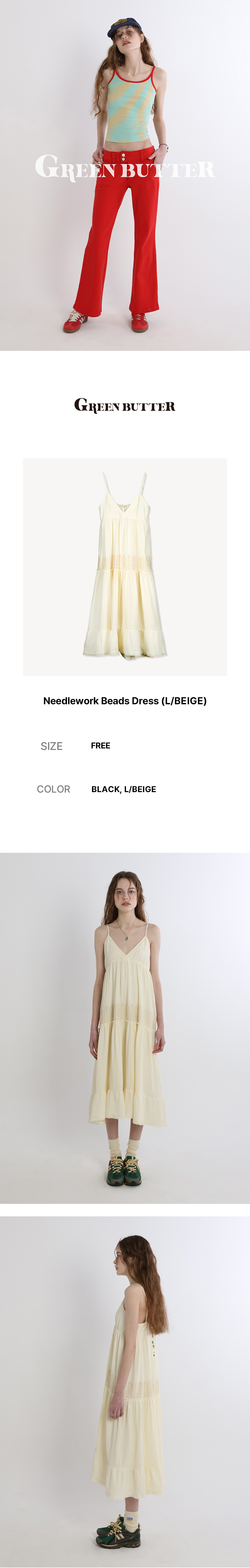 그린버터 우먼 니들워크 비즈 드레스 라이트 베이지