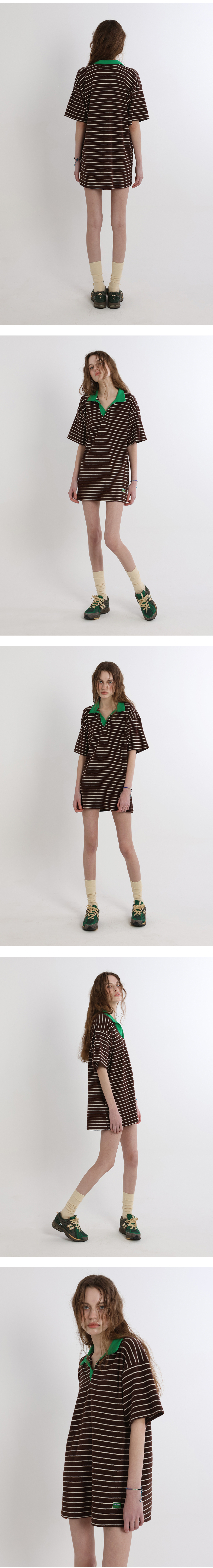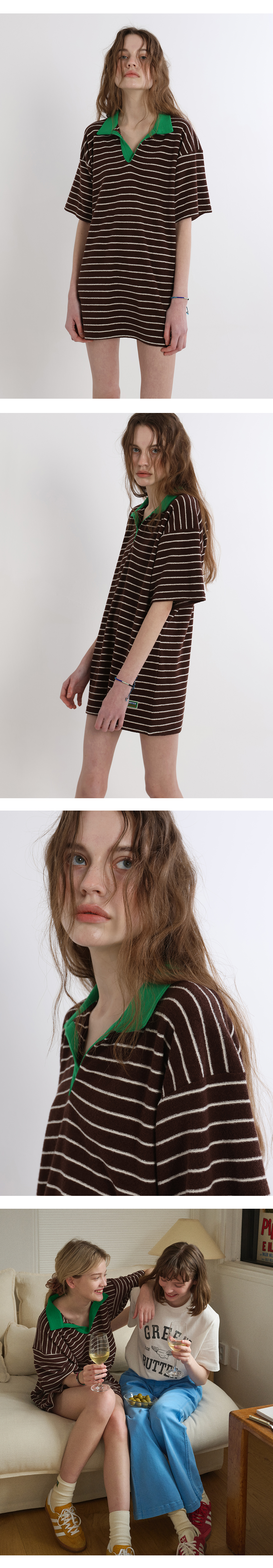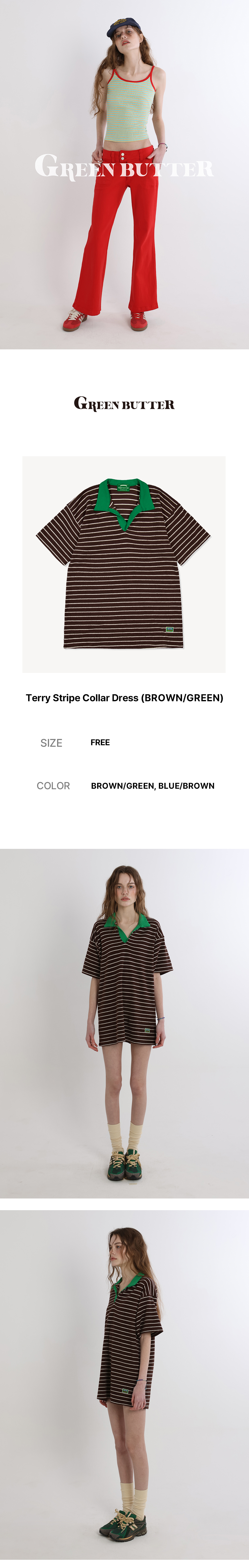 그린버터 우먼 테리 스트라이프 카라 드레스 브라운/그린