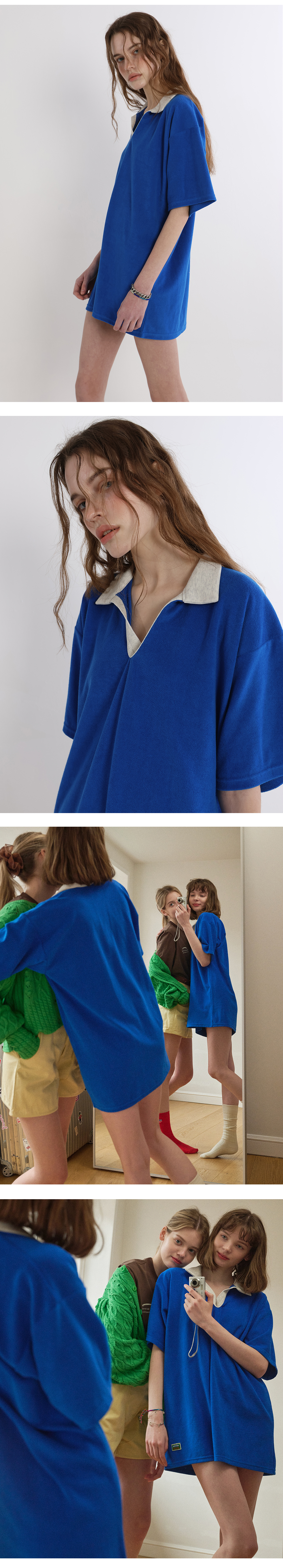 Greenbutter Women Terry Open-Collar Dress Cobalt