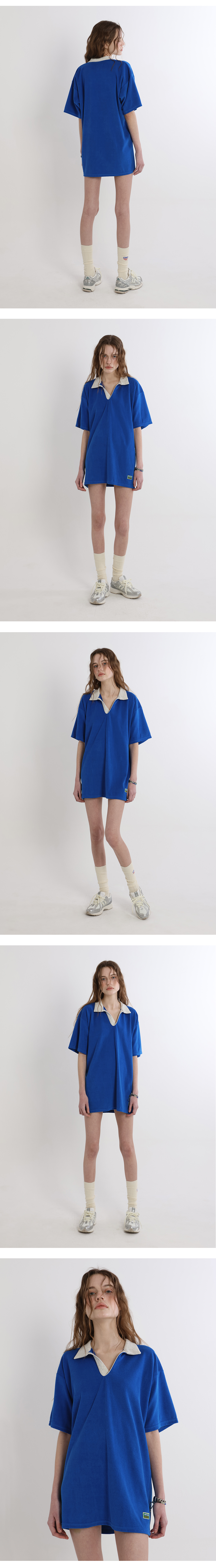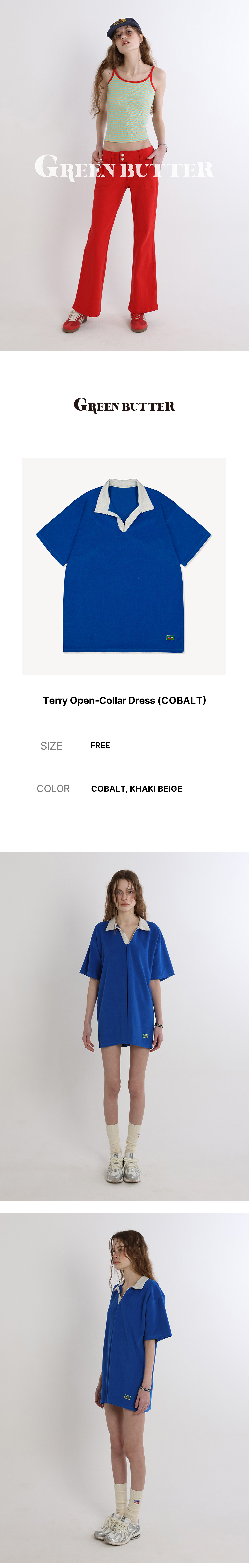 그린버터 우먼 테리 오픈 카라 드레스 코발트