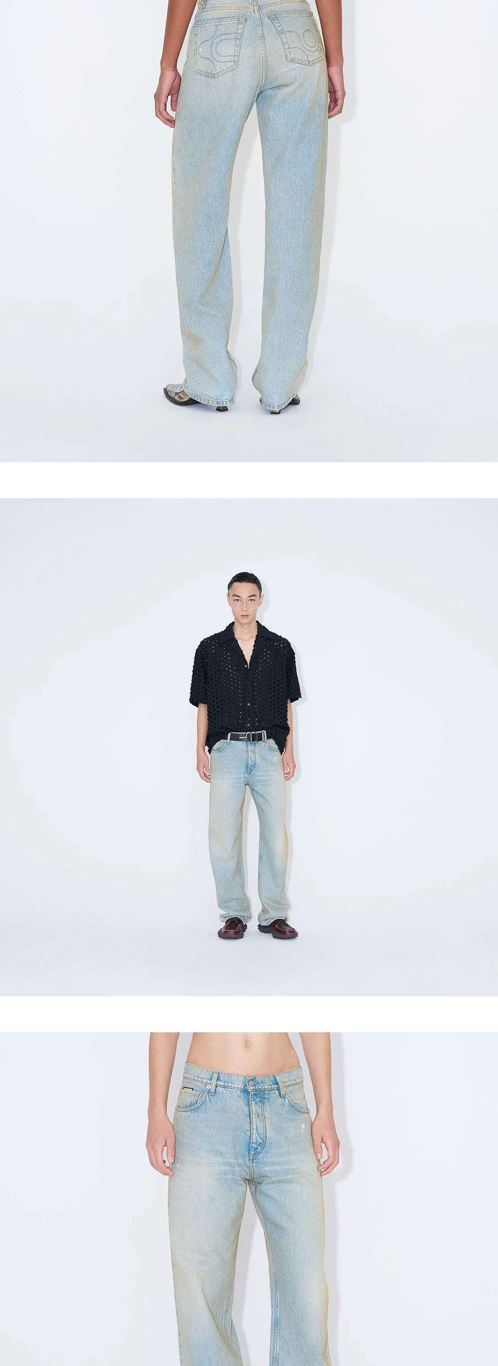'벤즈'는 90년대 스타일을 연상시키며 아이코닉한 배기 실루엣을 현대적으로 재해석한 제품입니다. - 따뜻한 인디고 베이스와 브론즈 스프레이가 사용된 워싱 - 빈티지한 느낌 * 모델 신체 스펙 M: 188cm - 착용 사이즈 30 / W: 173cm - 착용 사이즈 26