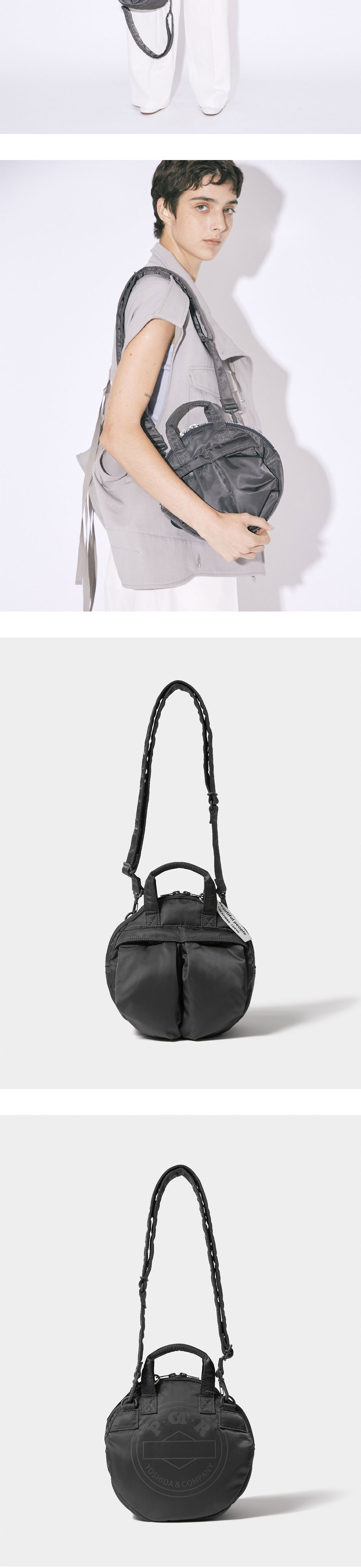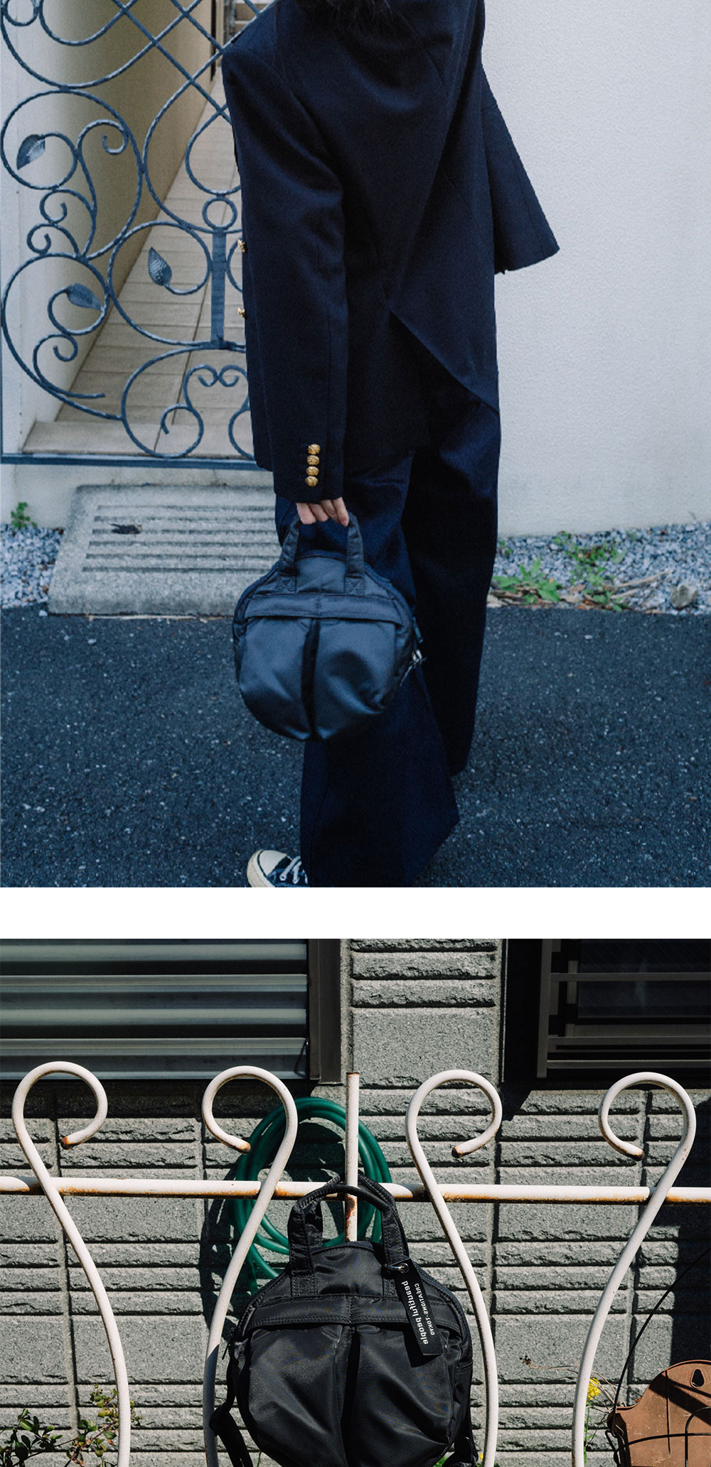 요시다 포터의 새로운 라인 "POTR"과 Beautiful People이 첫 콜라보레이션으로 선보이는 헬멧 백입니다. - 요시다 포터의 상징적인 헬멧 가방을 둥근 형상으로 변형한 디자인 - 원단과 동일한 색으로 도장된 금속 장식 - 뒷면의 POTR 실리콘 프린트 - 오리지널 로고 테이프