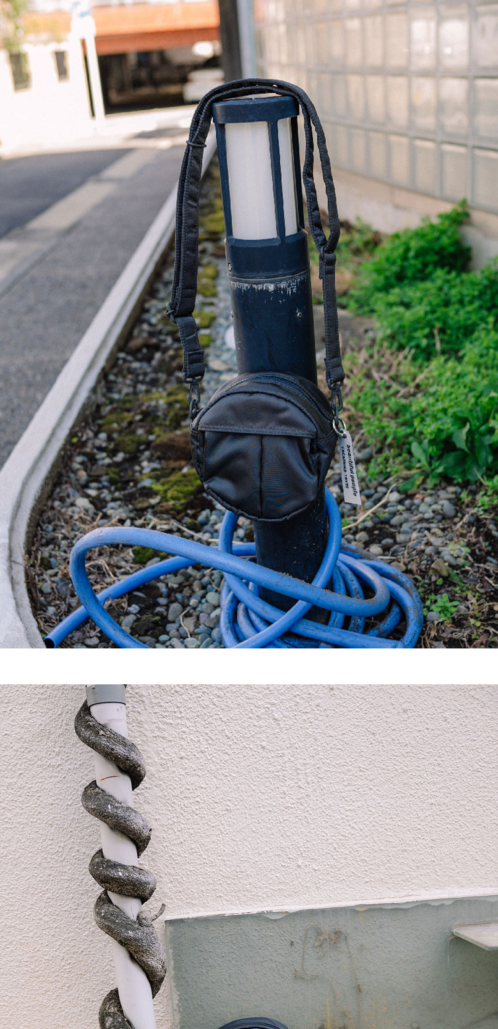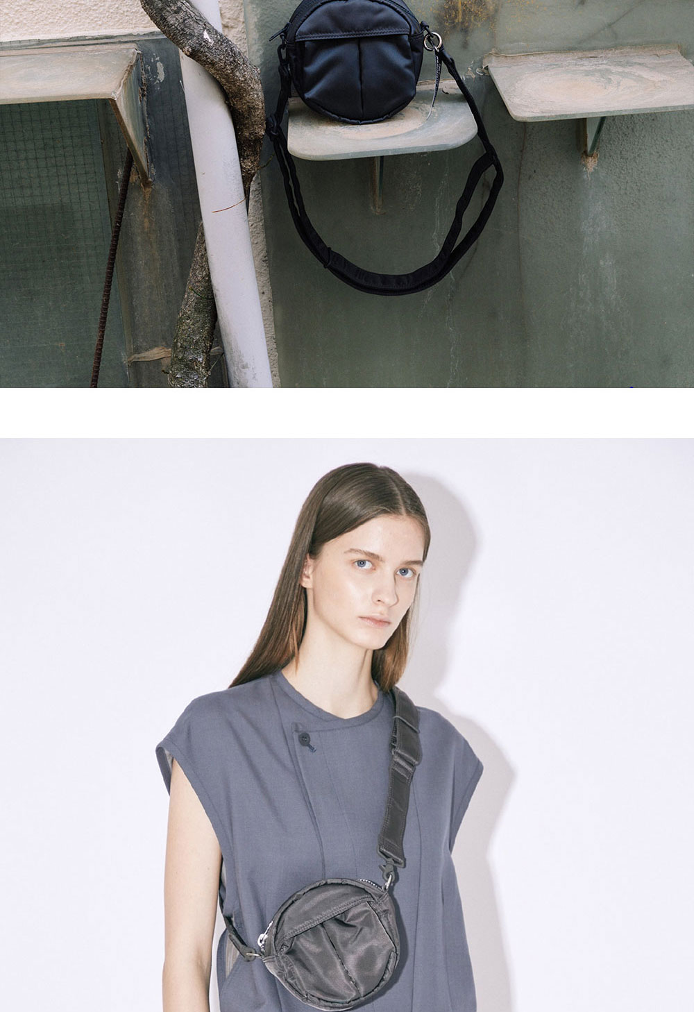 요시다 포터의 새로운 라인 "POTR"과 Beautiful People이 첫 콜라보레이션으로 선보이는 숄더 백입니다. - 요시다 포터의 상징적인 헬멧 가방을 둥근 형상으로 변형한 디자인 - 원단과 동일한 색으로 도장된 금속 장식 - 뒷면의 POTR 실리콘 프린트 - 오리지널 로고 테이프