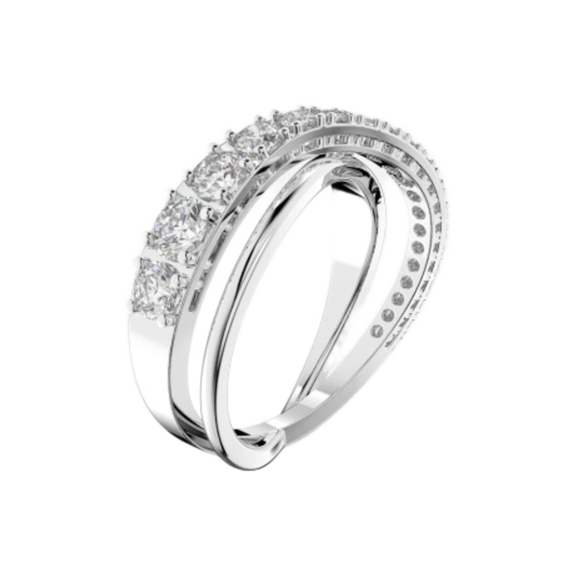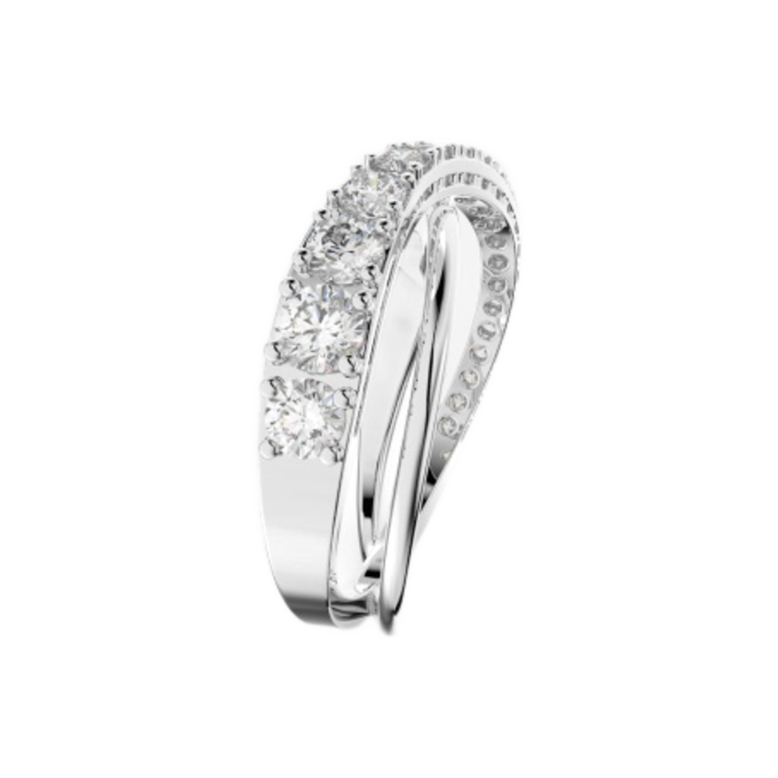 (W) Swarovski Twist Ring Round Cut White Rhodium Plated