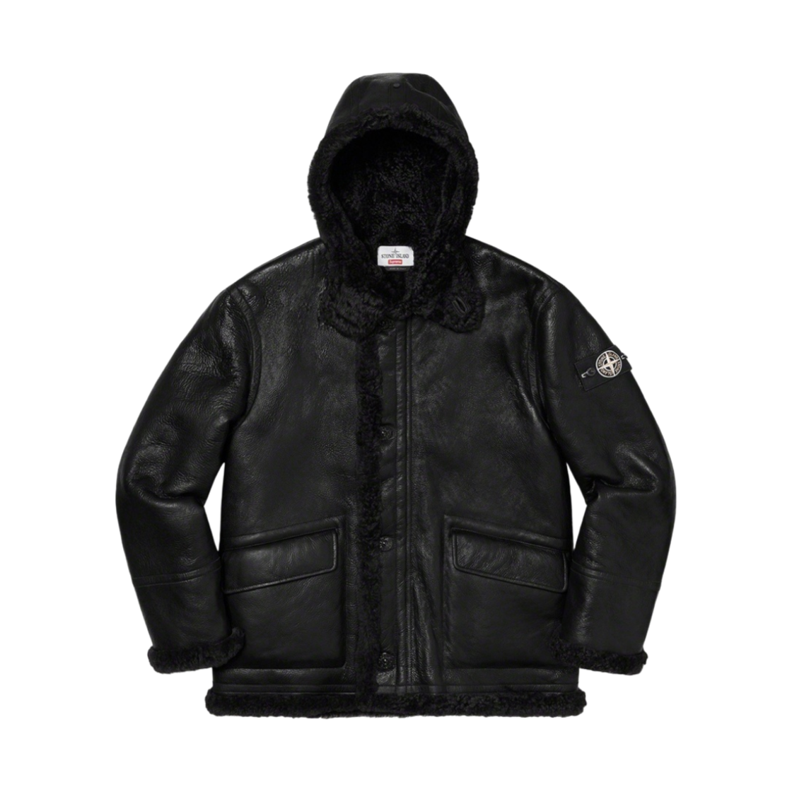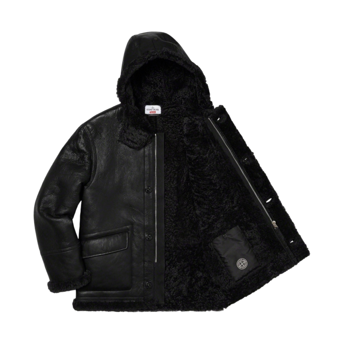 Supreme x Stone Island Hand-Painted Hooded Shearling Jacket Black - 20FW