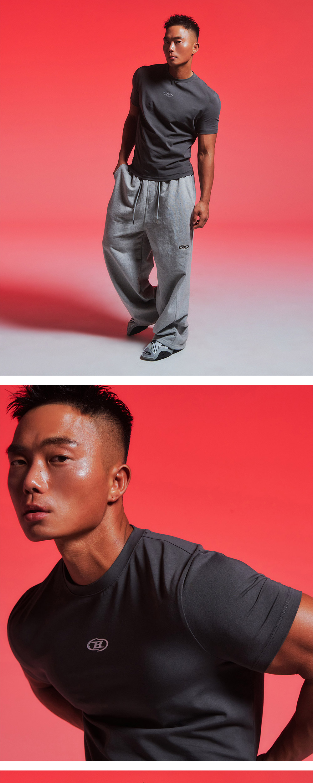 본투윈 실버 B 로고 머슬핏 티셔츠 차콜
