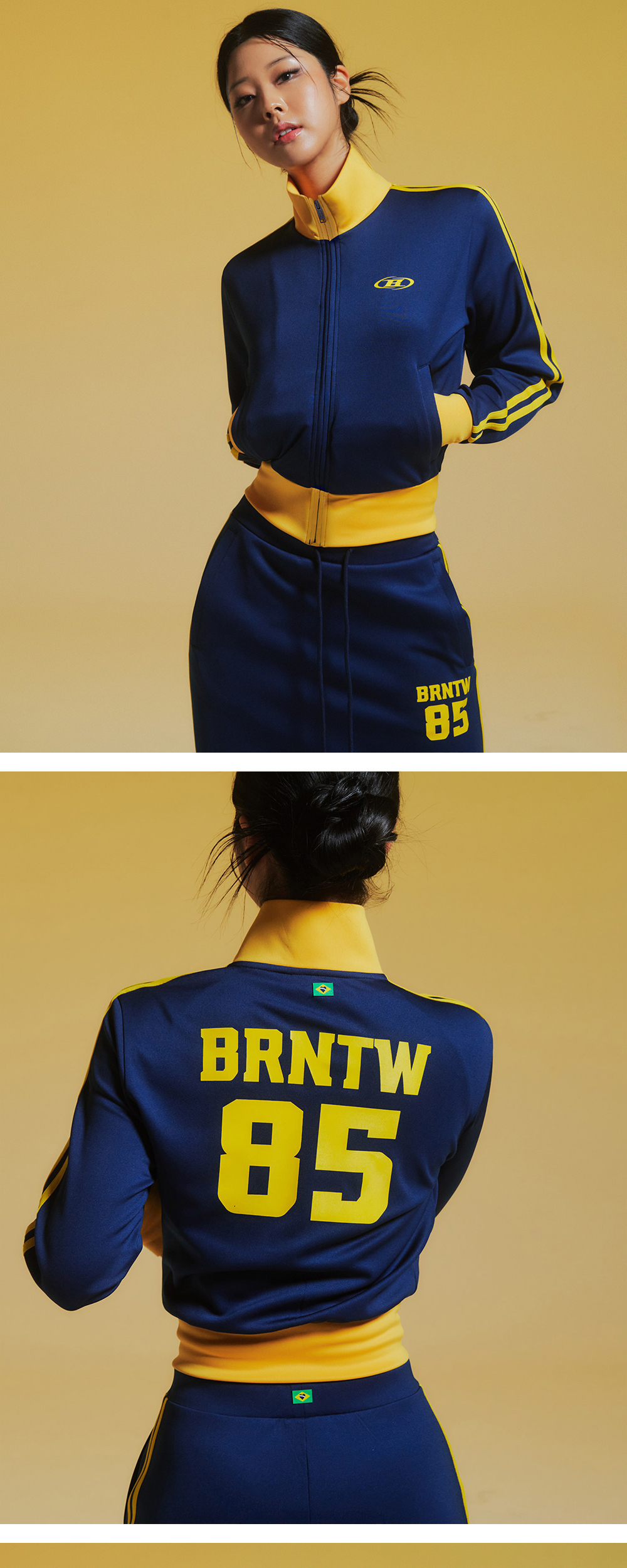 [DETAILS] * 트랙 라인 저지 크롭 집업 - 경량 폴리 저지 원단 - 전면 심볼 B 로고 및 후면 시그니처 프린팅 - 활용도 높은 지퍼 포켓 Material : Polyester 92% Polyurethane 8% Fitting : 1 Size, 165cm, 53kg