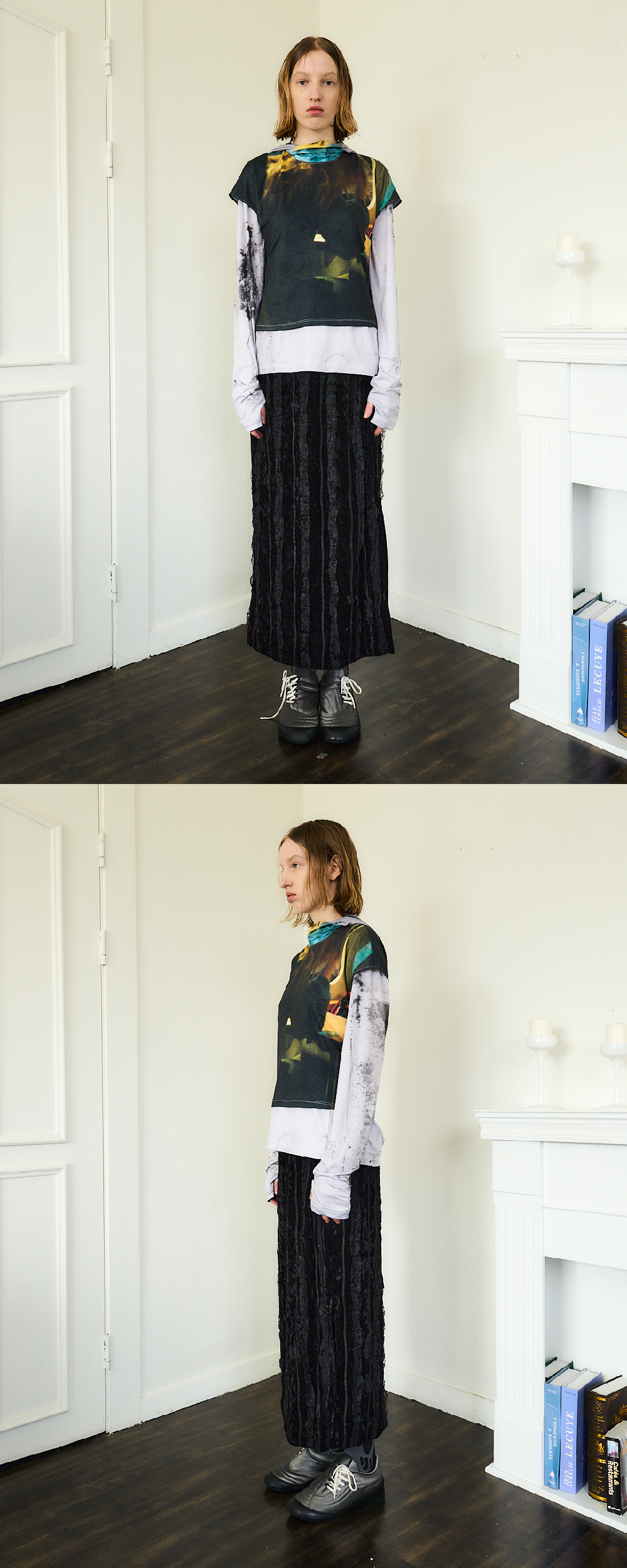 Press printing on cooling fabric Good for layered 매 시즌 선보이는 프린팅 티셔츠 시리즈 입니다 반팔 하나만 입어도 포인트가 되며, 후디 또는 목티 등 긴팔과 레이어링 하여 봄 여름 스타일링을 연출하기 좋습니다. Made in South Korea Washing Information Machine wash cold With like colours Do not bleach Recommend dry clean