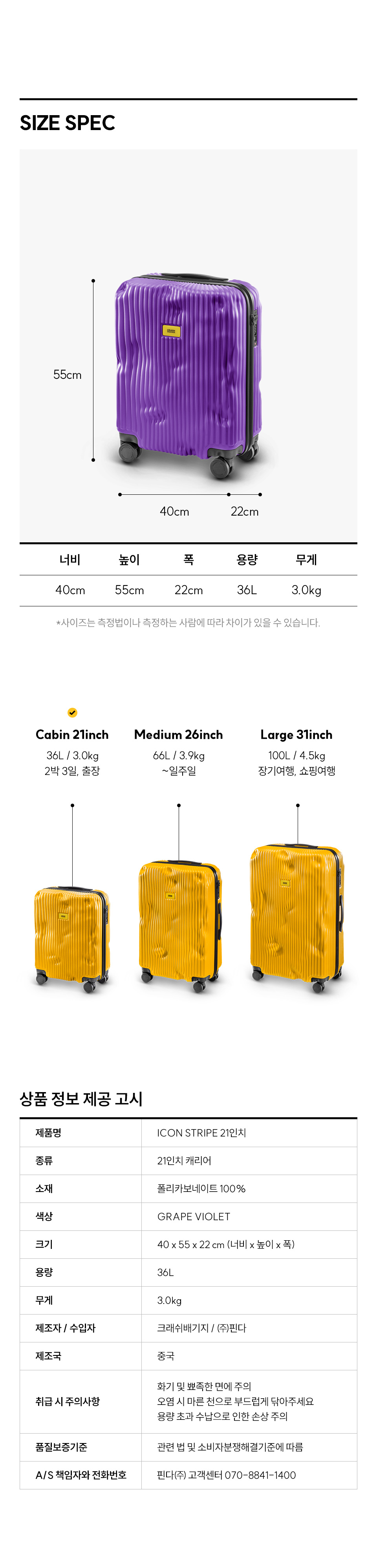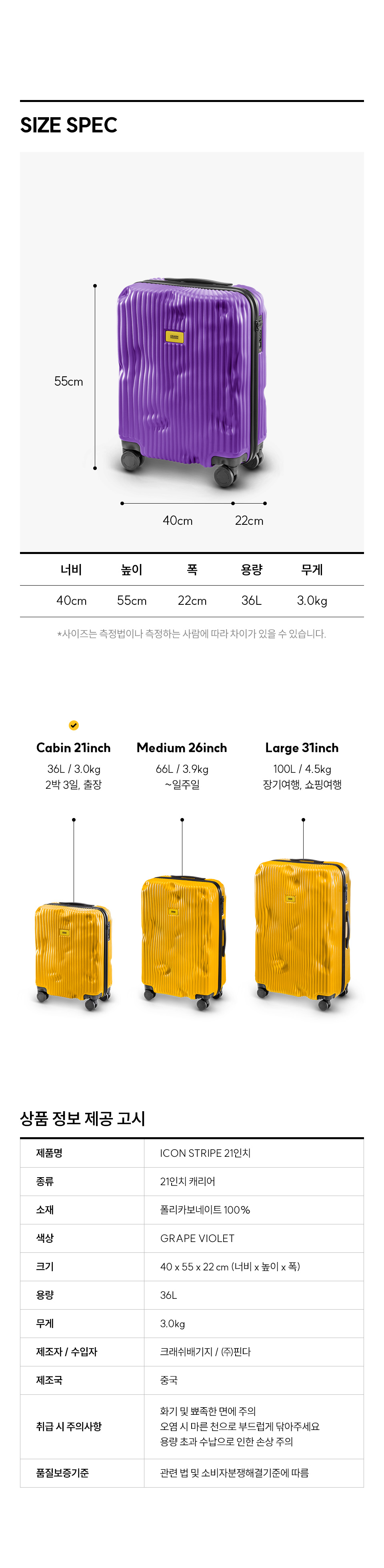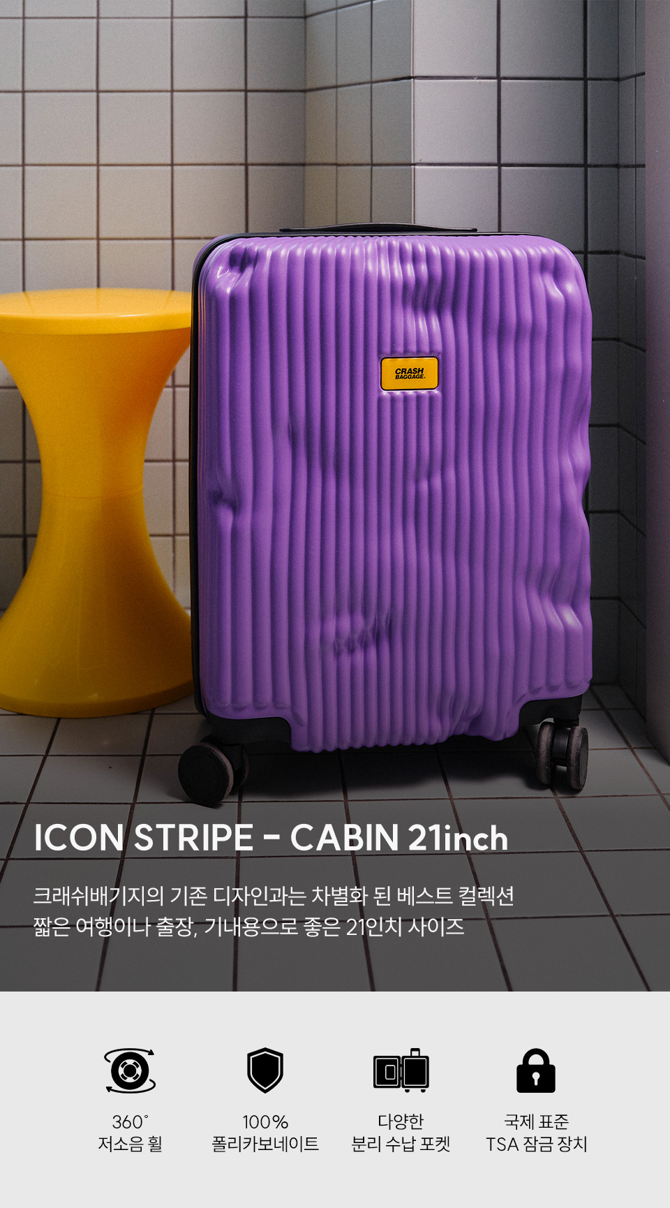 크래쉬배기지 아이콘 스트라이프 21인치 캐리어 그레이프 바이올렛