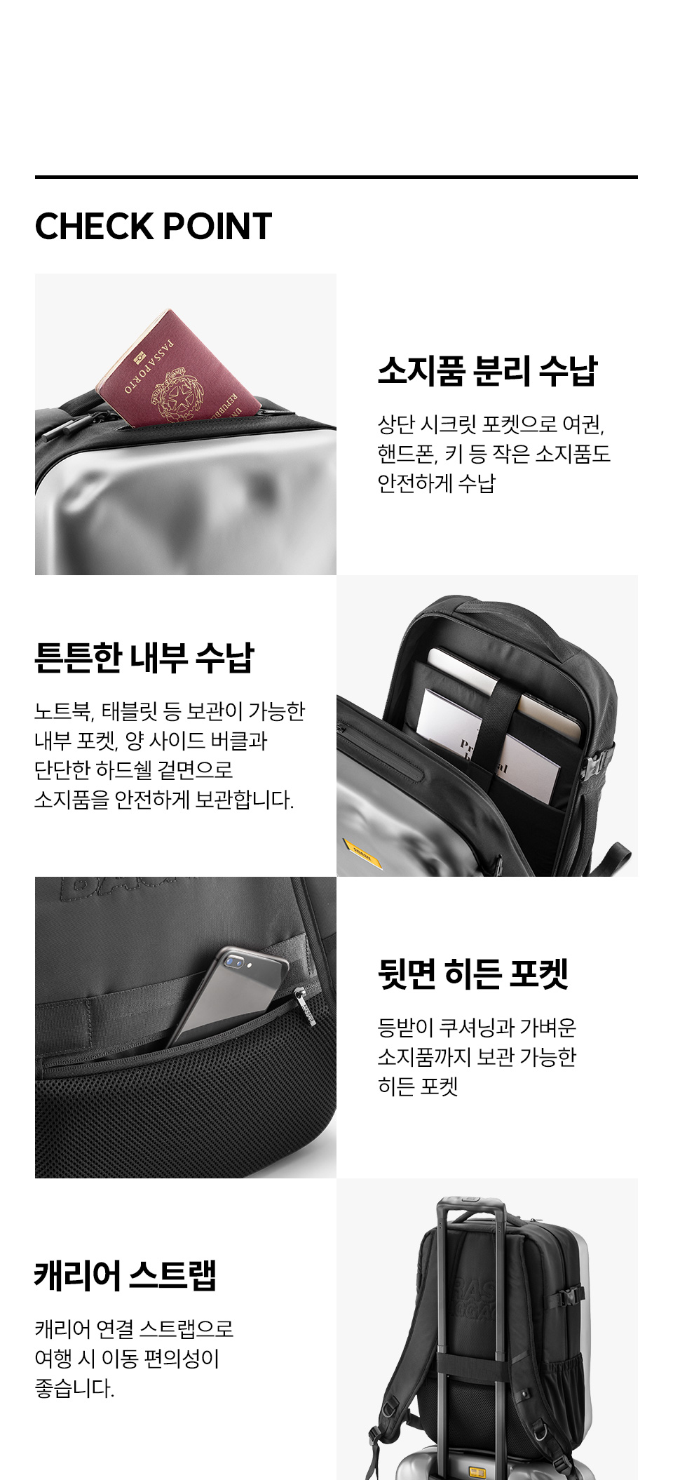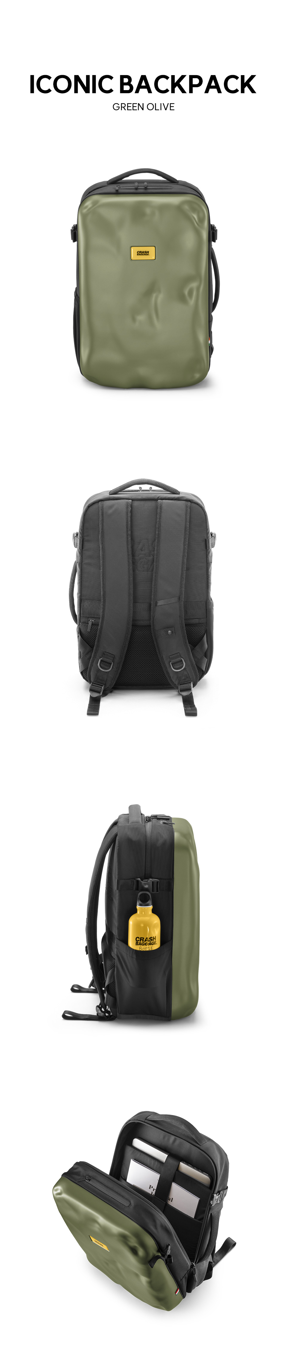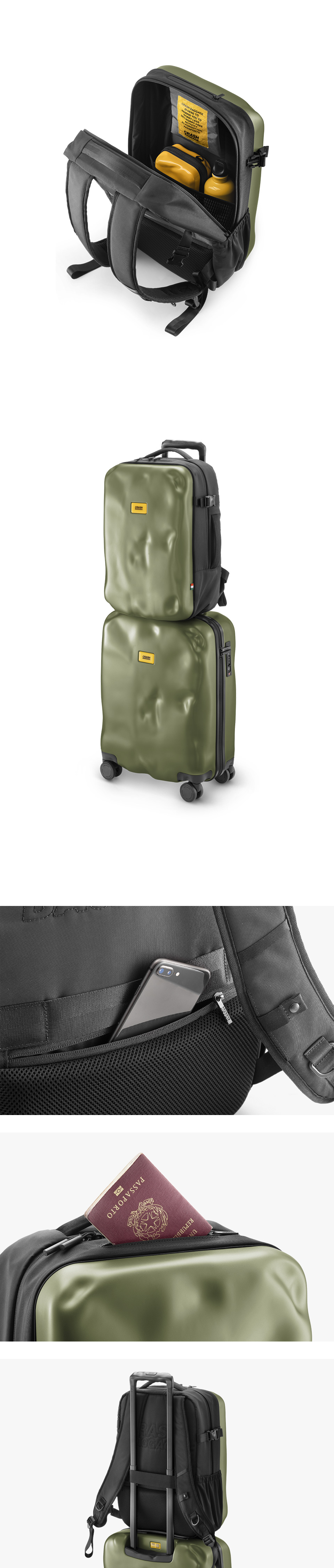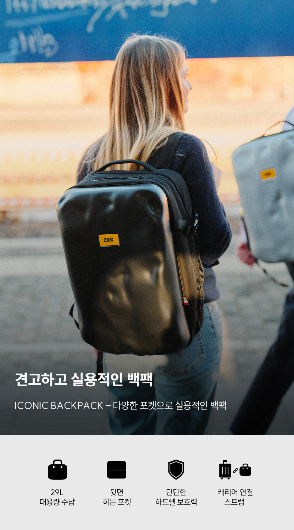 ICONIC 라인은 크래쉬배기지의 시그니쳐 디자인인 덴트 디자인으로 제작한 BACKPACK 라인입니다. 내외부에는 노트북 수납 공간, 태블릿 및 문서 홀더를 포함하여 여러 개의 다용도 포켓이 있습니다. 트롤리에 배낭을 고정하고 운반하기 위한 스트랩이 있는 인체공학적 등받이가 있습니다.