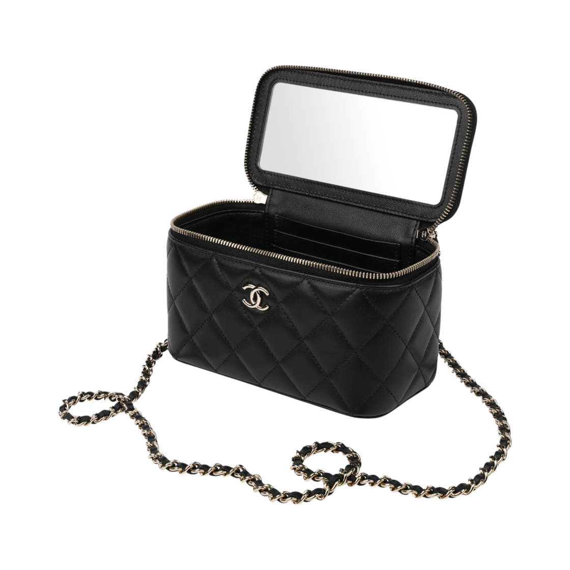 Chanel Vanity With Chain Lambskin & Gold Black (Inside Mirror)