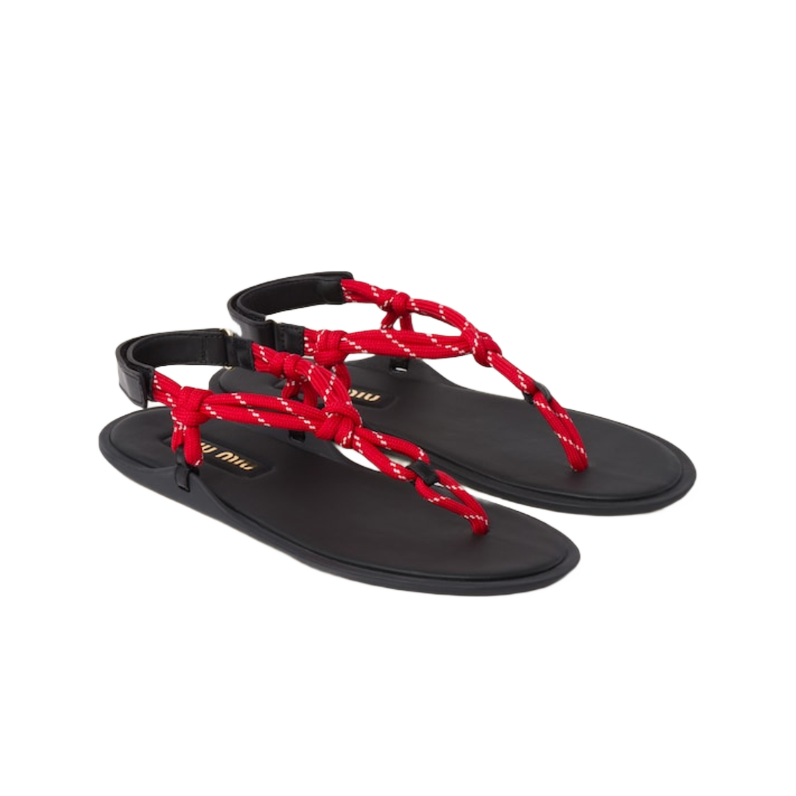 (W) Miu Miu Riviere Cord and Leather Sandals Red