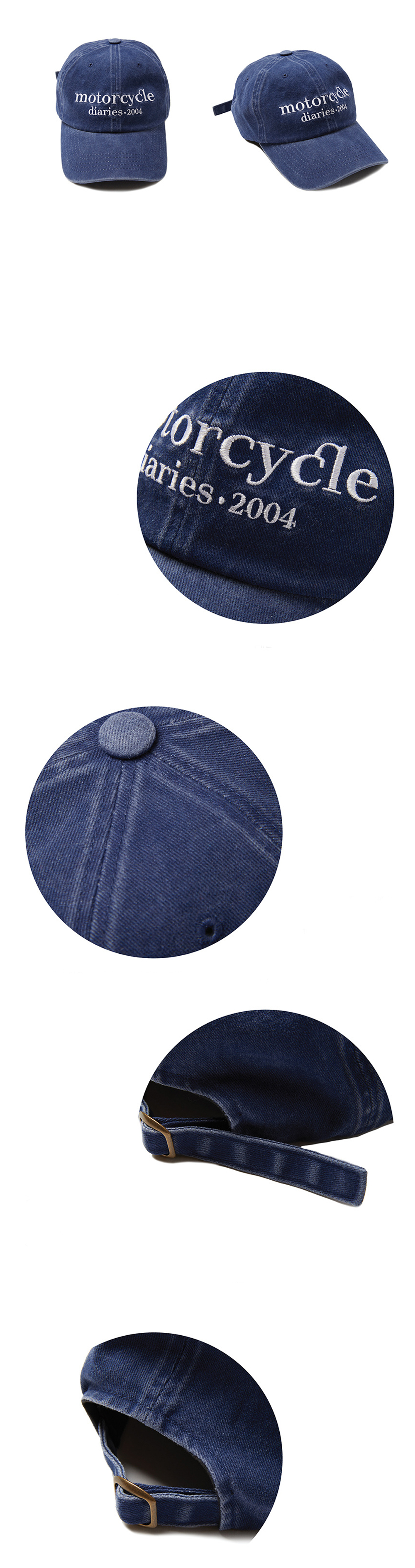 오가프의 빈티지 캐주얼 아이덴티티를 보여주는 모터싸이클 볼캡입니다. 자연스러운 빈티지 느낌을 주기 위해 봉제 작업 후 바이오 워싱 처리를 하였습니다. 올드 무비에서 영감을 받아 모터싸이클 다이어리 로고를 현대적으로 재해석하였습니다. 얇은 실로 자수 처리하여 자수의 밀도가 촘촘하게 작업하였습니다.