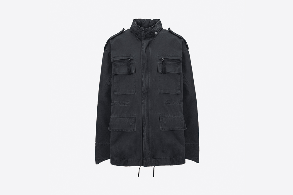가먼트 다잉 오버사이즈 밀리터리 자켓 스탠드칼라에 지퍼로 사용 사능한 후드 후드 사이즈 조절을 위한 드로우 스트링과 목 여밈을 위한 벨크로탭 앞판 지퍼와 히든 스냅버튼 여밈 전면 가슴에서 소매로 이어지는 지퍼 디테일 전면 네개의 주머니와 히든 스냅버튼 여밈 견장 디테일 내부에 실루엣 조절과 이동성을 위한 웨빙 소매 사이즈 조절을 위한 벨크로 스트랩 허리 사이즈 조절을 위한 드로우스트링 밑단 사이즈 조절을 위한 드로우스트링 Shell : 100% Cotton