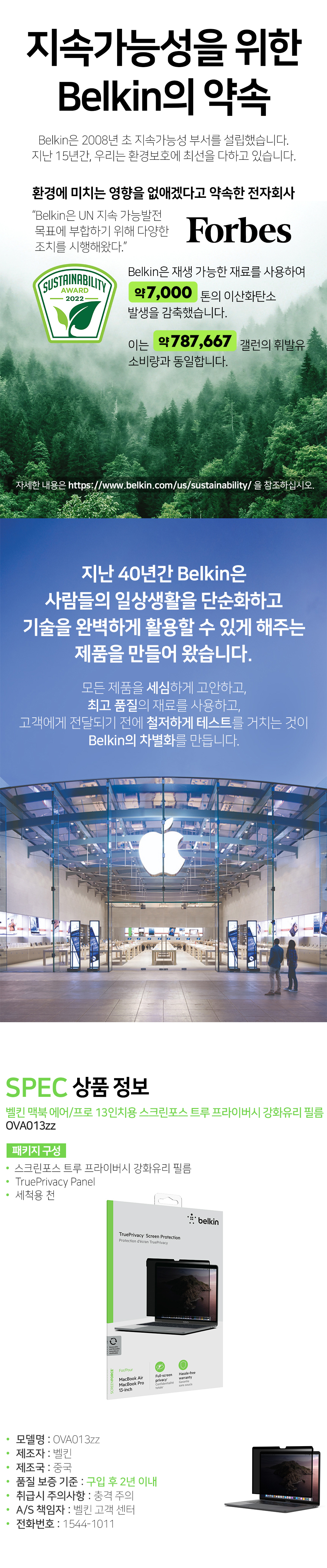 벨킨 맥북 에어/프로 13인치 스크린포스 프라이버시 강화유리 필름 맥북 스크린 보호 보안필름 OVA013zz