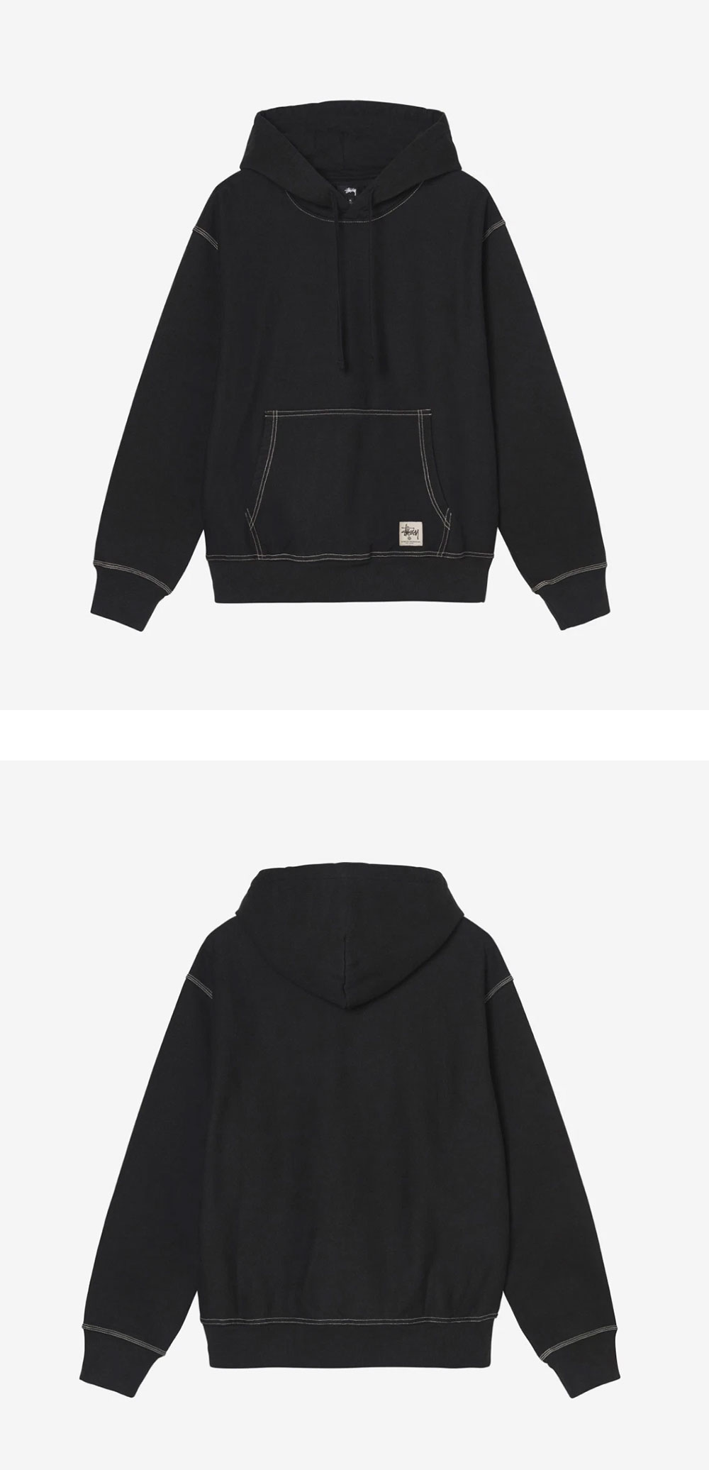 스투시 콘트라스트 스티치 라벨 후드 블랙