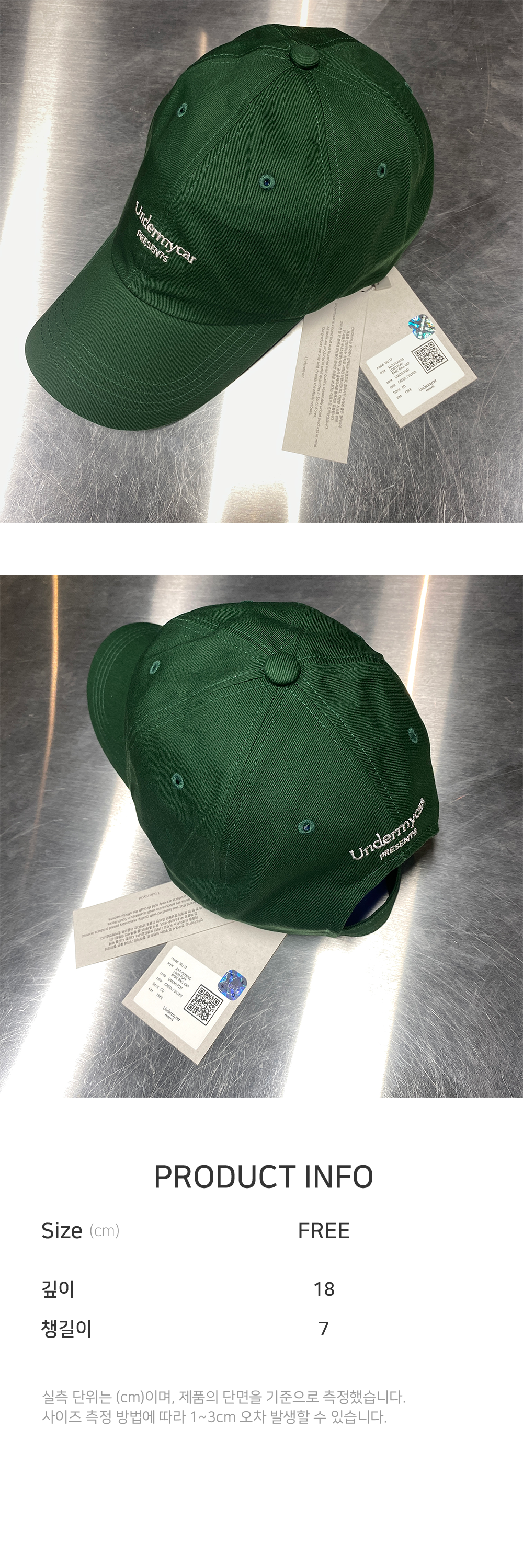 언더마이카 무.17 안티 Fxxking 로고 플레이 베이직 볼캡 그린 / 실버