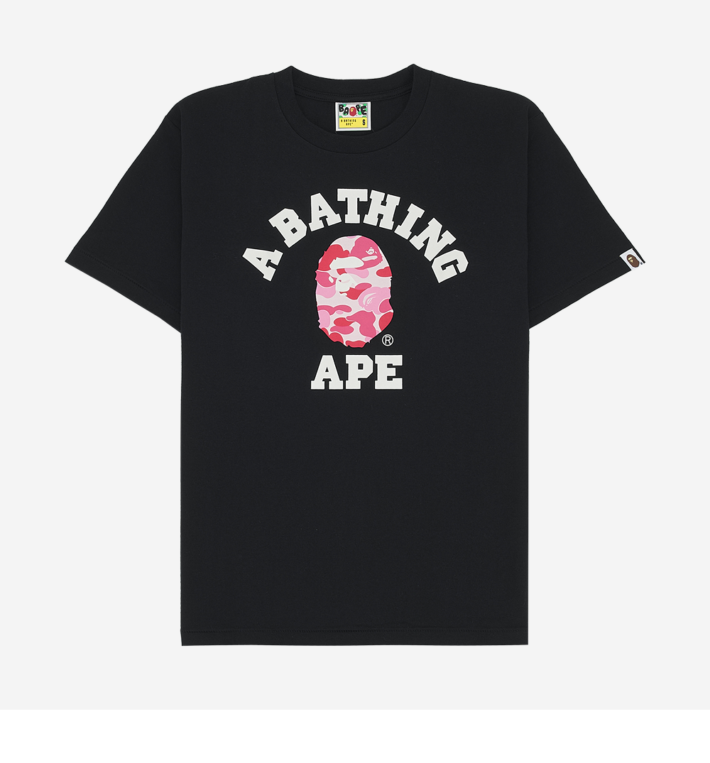베이프 ABC 카모 컬리지 티셔츠 블랙 핑크