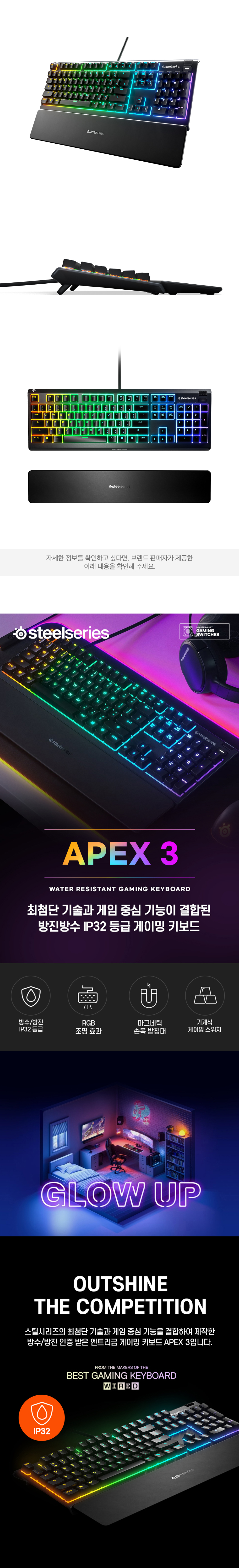스틸시리즈 에이펙스 3 KR 멤브레인 게이밍 키보드