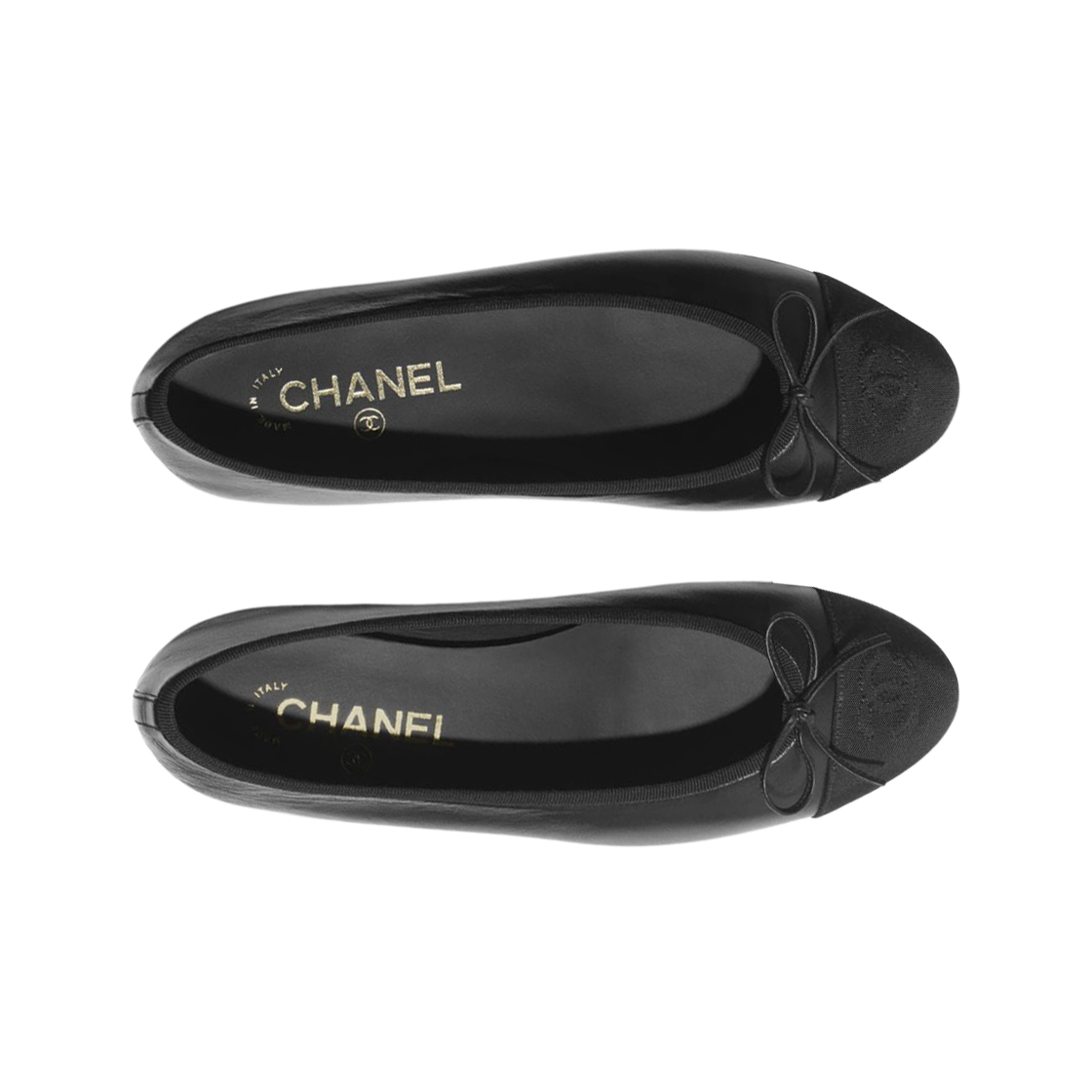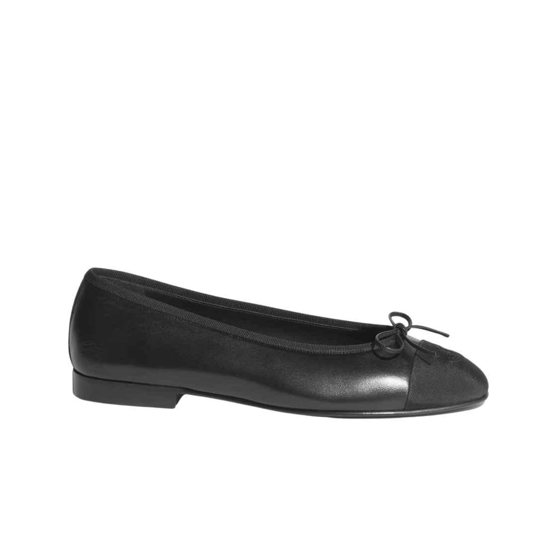 (W) Chanel Ballerina Flat Lambskin Grosgrain & Black