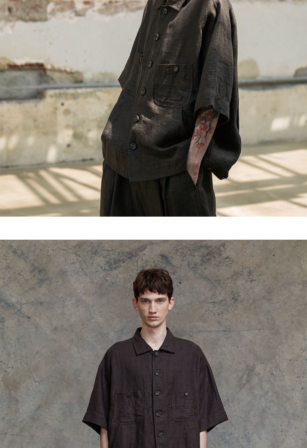 특유의 색감과 여유로운 핏이 특징인 지기첸의 오버사이즈 숏슬리브 워커 셔츠를 소개합니다. - 오버사이즈 핏 - 힙을 덮는 기장 - 클래식 워커 칼라 - 두 개의 가슴 포켓 *모델 신체 스펙 : 187cm / 착용 사이즈 : 48