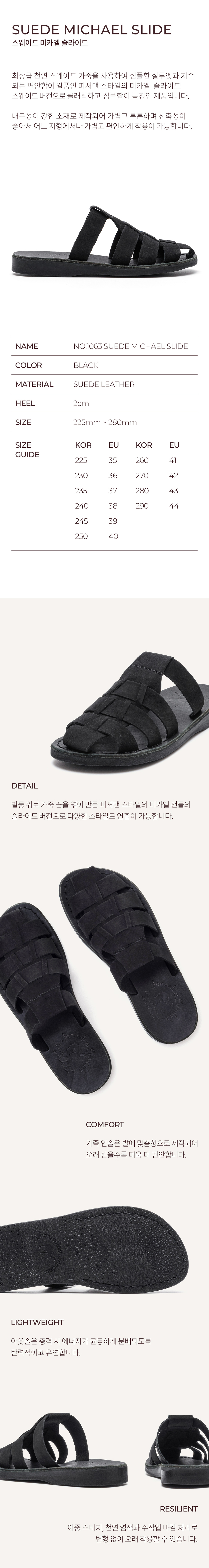 예루살렘 샌들 1063 미카엘 슬라이드 스웨이드 블랙
