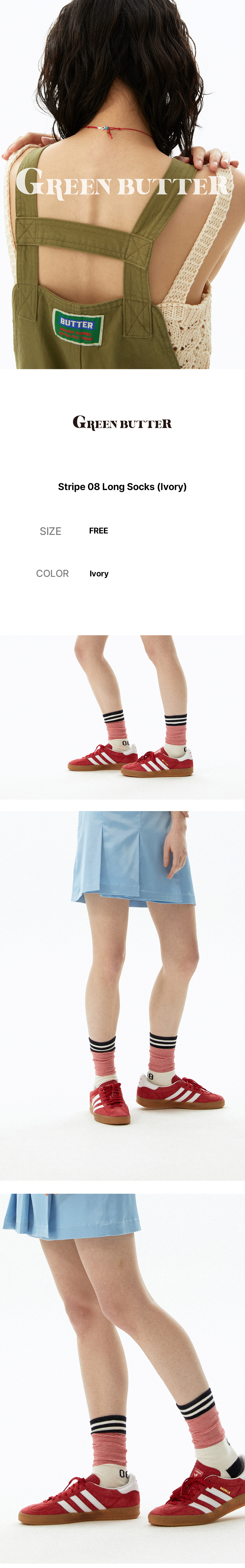 그린버터 우먼 스트라이프 08 롱 삭스 아이보리
