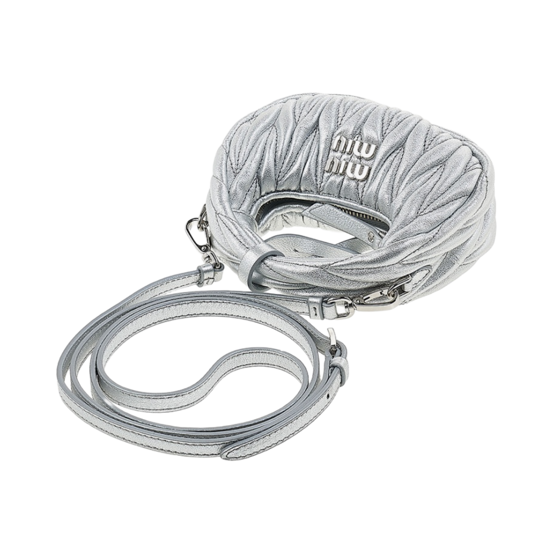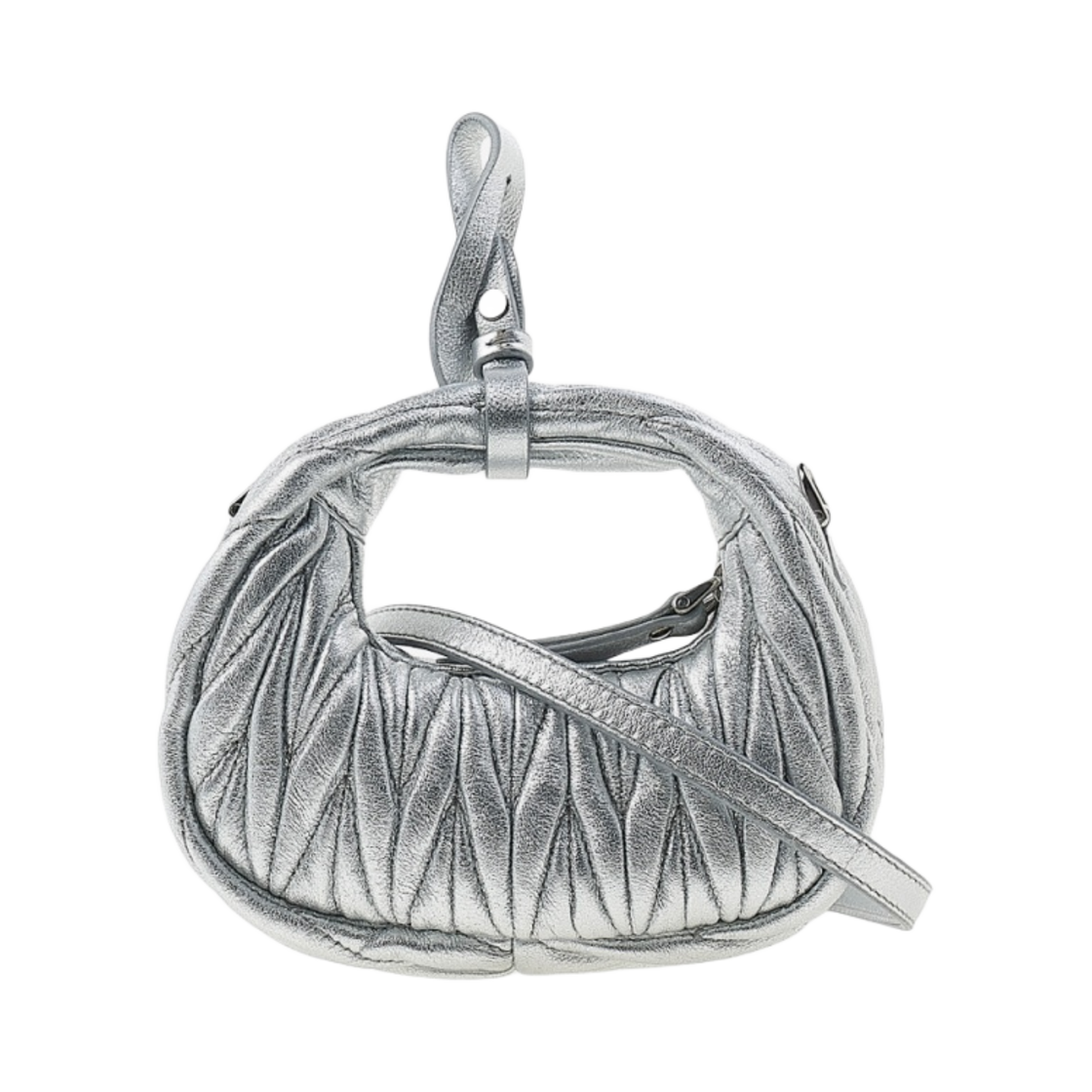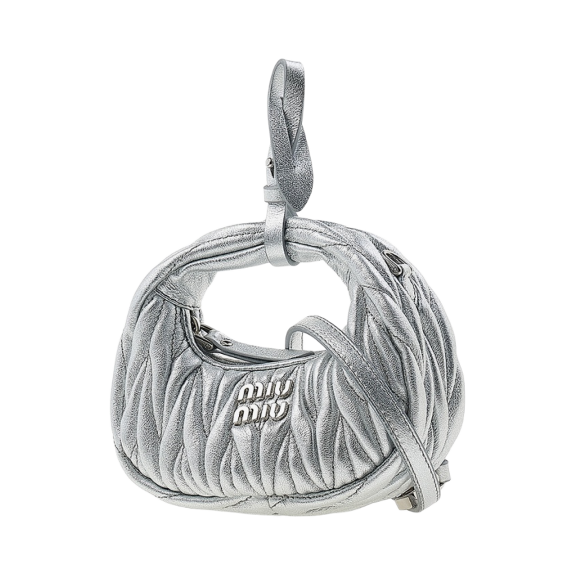 Miu Miu Wander Matelasse Nappa Leather Mini Hobo Bag Pouch Silver