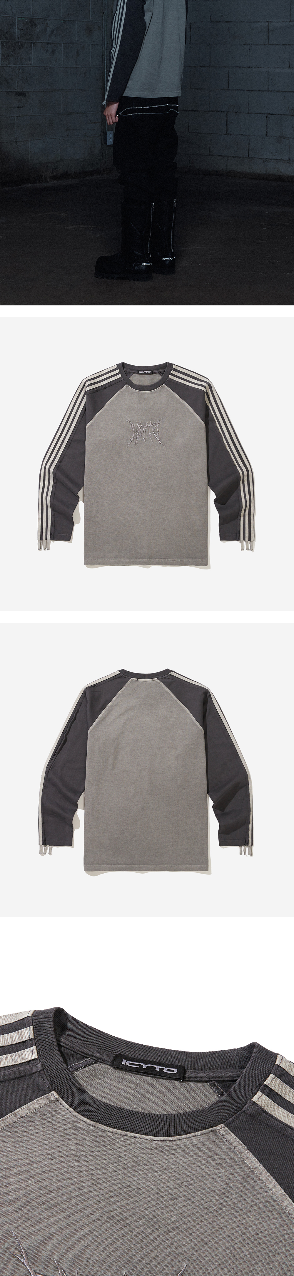 아이시토 래글런 롱슬리브 티셔츠 그레이