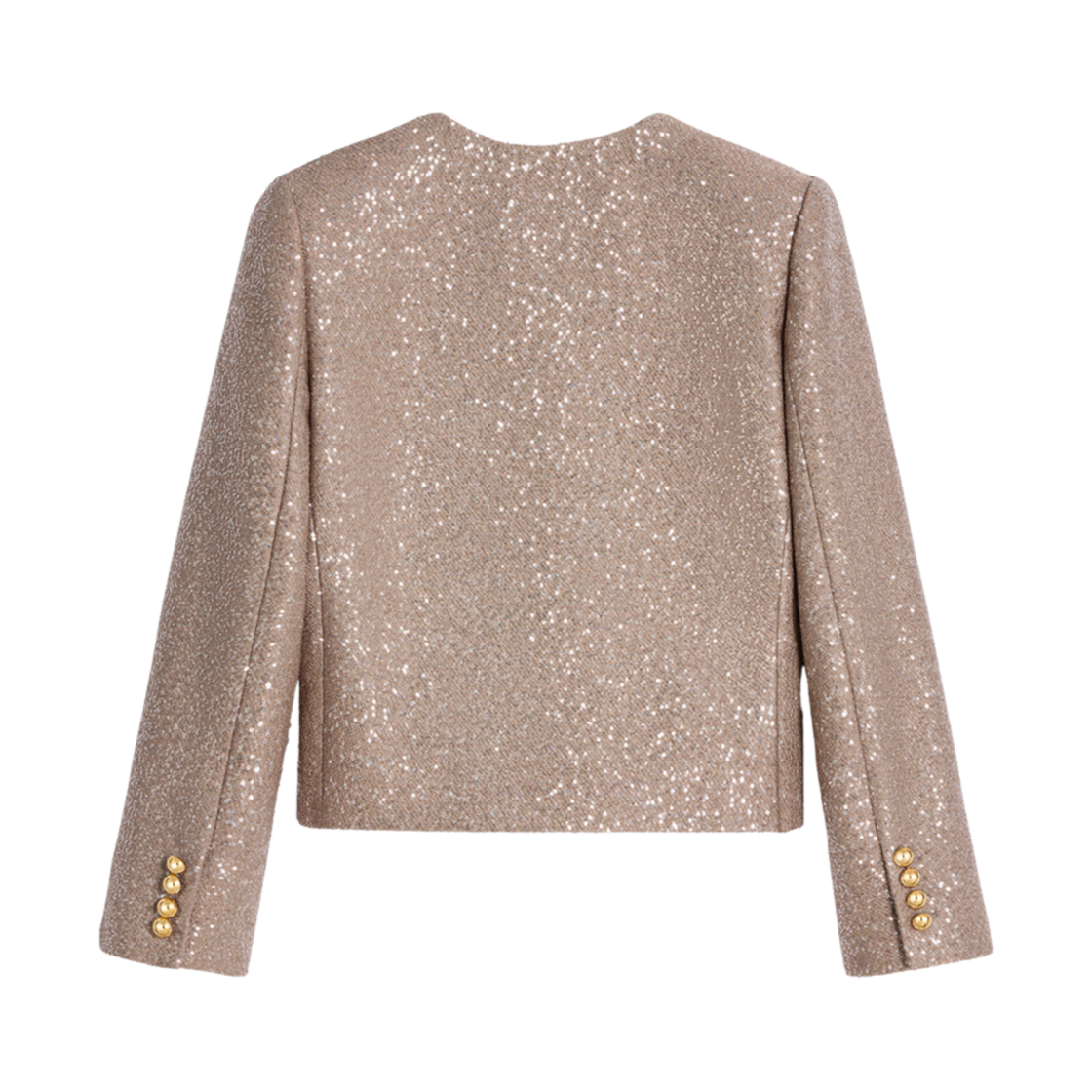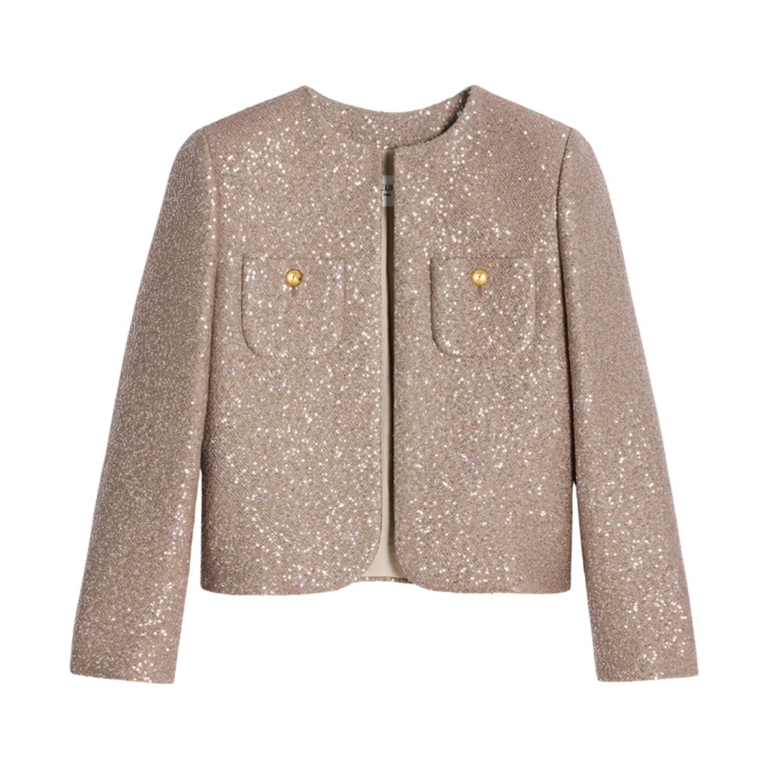 (W) Celine Embroidered Chelsea Jacket in Wool Vieux Rose Argent