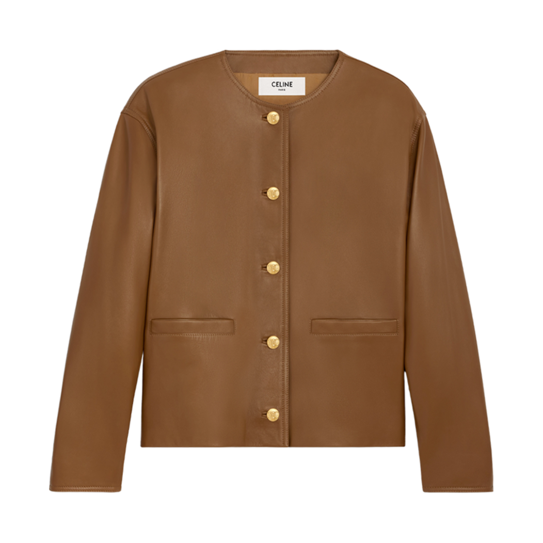 (W) Celine Jacket with Pure Collar in Soft Lambskin Beige
