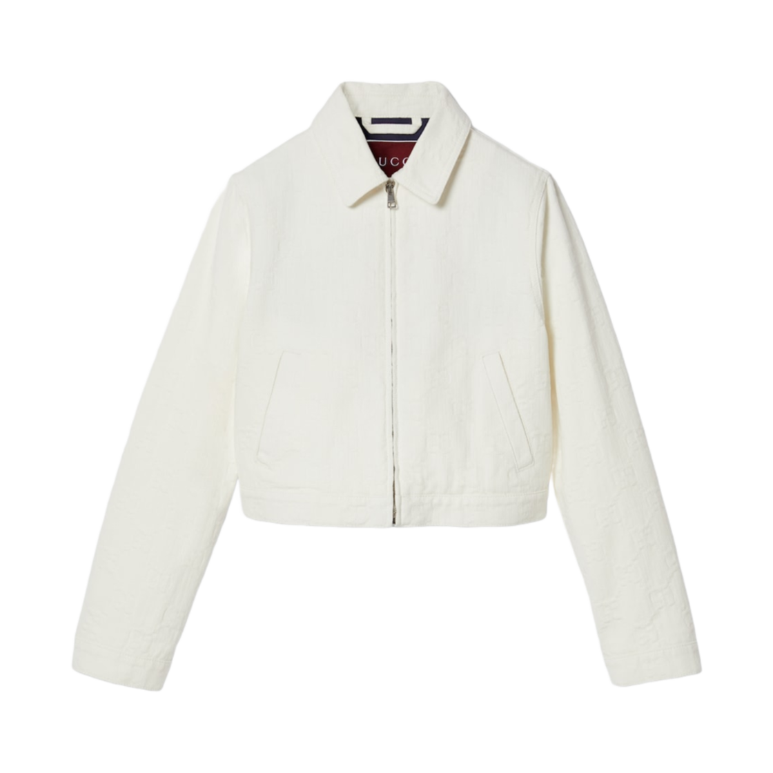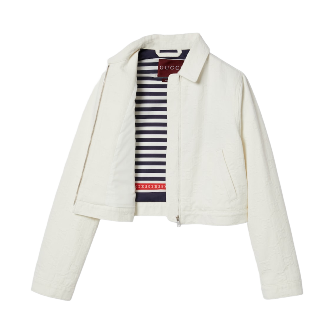 (W) Gucci GG Jacquard Denim Jacket White GG Jacquard Denim