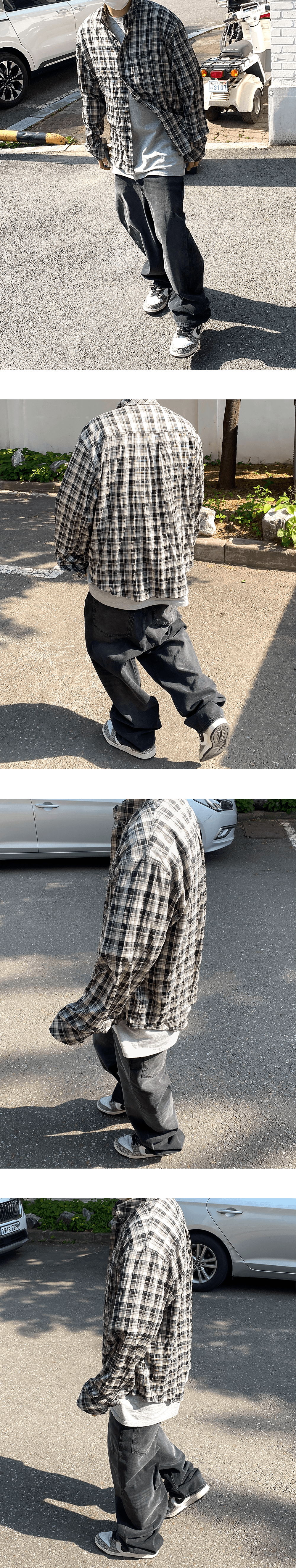 언더마이카 무.32 안티 Fxxking 로고 플레이 베이직 롱 슬리브 체크 셔츠 블랙 그레이