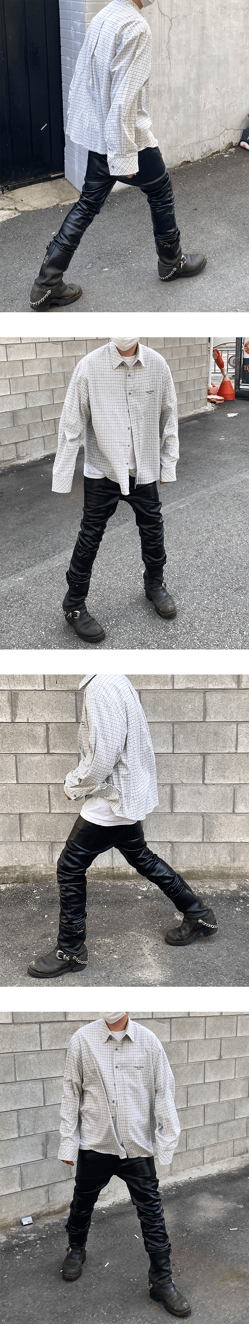 언더마이카 무.34 안티 Fxxking 로고 플레이 베이직 롱 슬리브 체크 셔츠 화이트 그레이