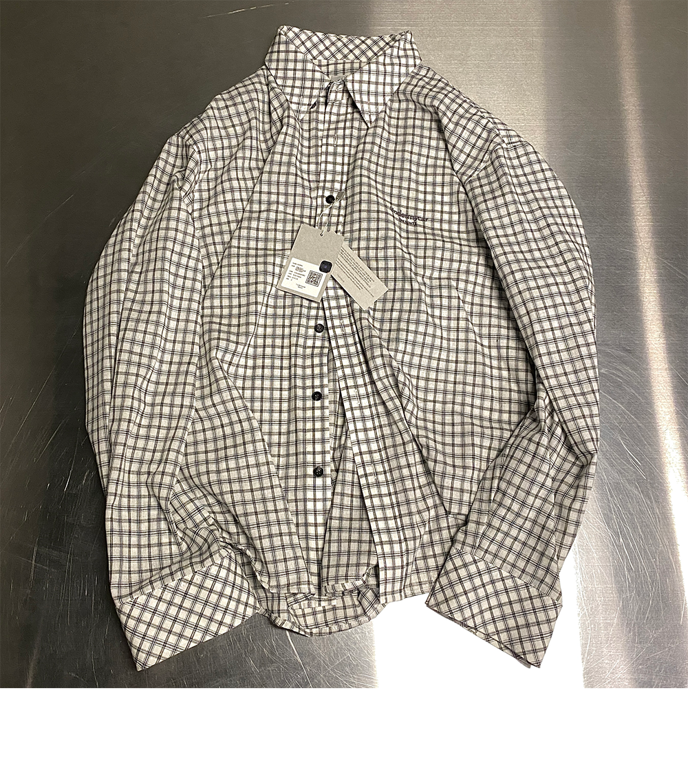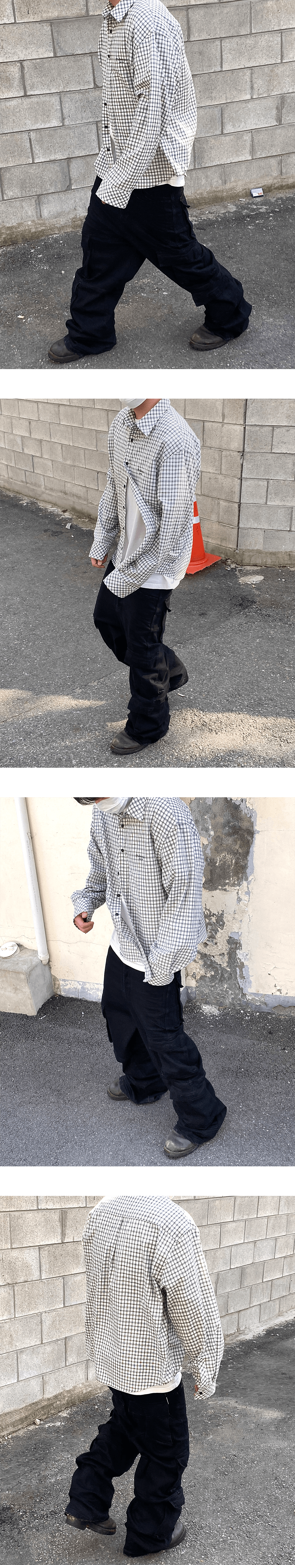 언더마이카 무.35 안티 Fxxking 로고 플레이 베이직 롱 슬리브 체크 셔츠 화이트 블랙