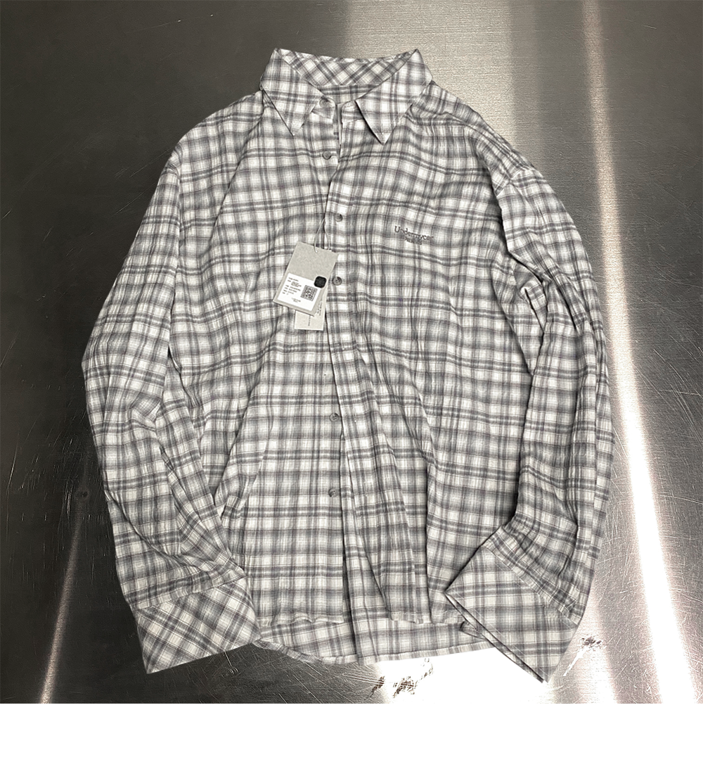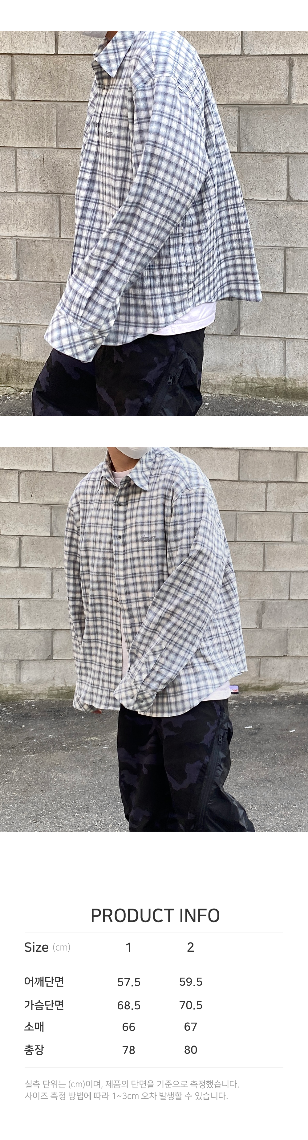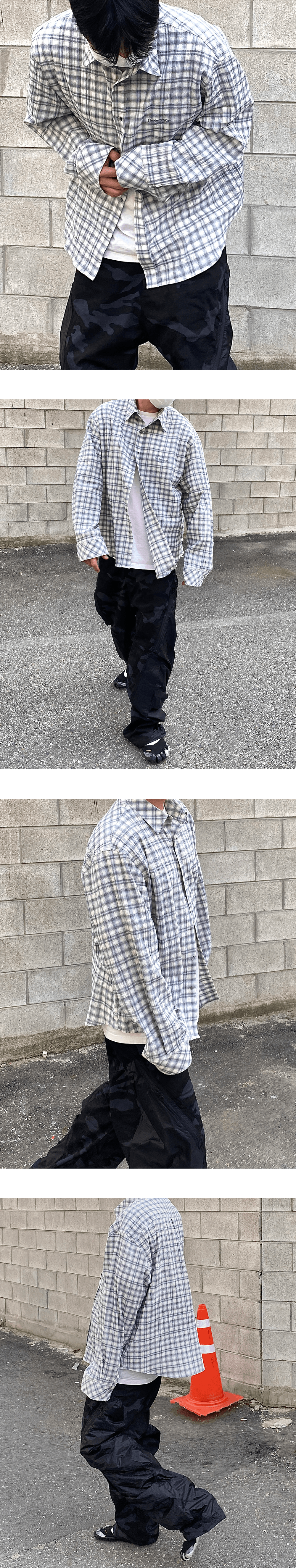 언더마이카 무.37 안티 Fxxking 로고 플레이 베이직 롱 슬리브 체크 셔츠 화이트 블루