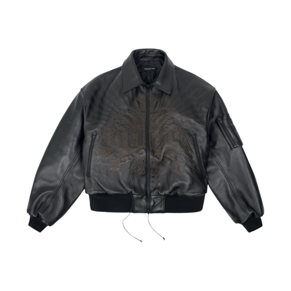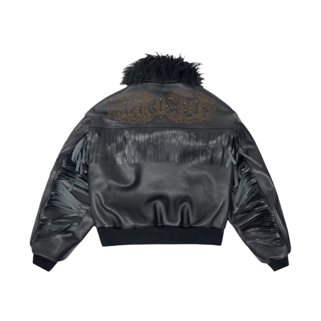프로젝트 G/R x 엠에프엠333. 포우 레더 디테처블 퍼 프린지 봄버 자켓 블랙