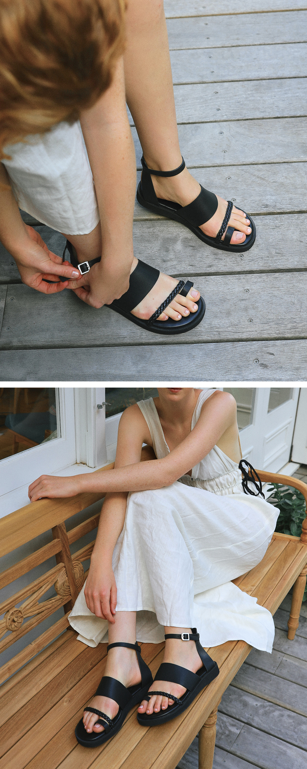 - 에스닉한 무드의 레이어드 스트랩이 매력적인 플랫폼샌들 - 토우링 포인트와 꼬임 디테일로 자연스러운 포인트 - 푹신푹신한 경량 플랫폼 아웃솔로 유연하고 부드러운 착화감 - 자연스러우면서 밋밋하지 않은 디테일로 여름시즌 포인트 아이템