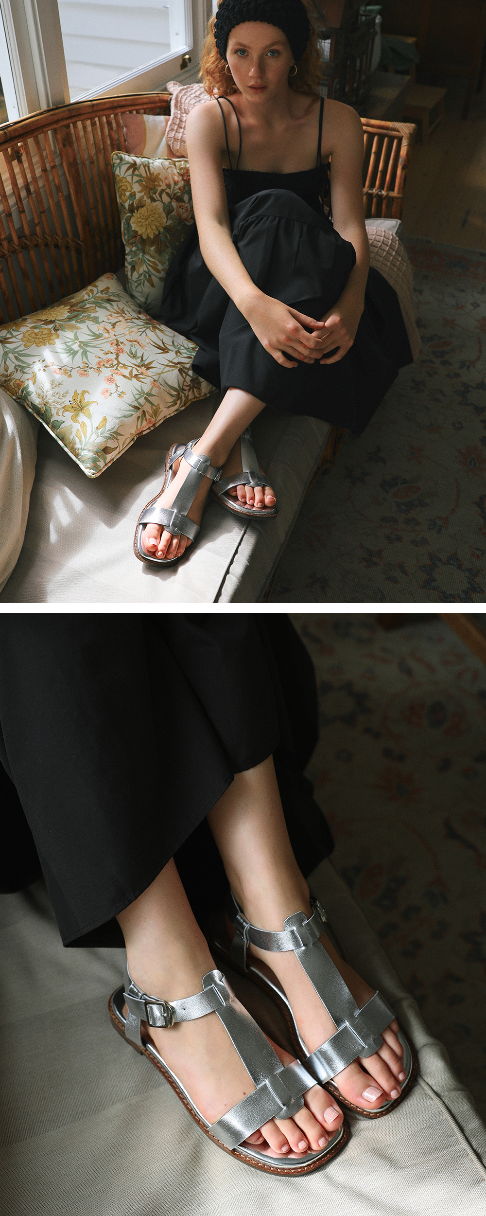 - 미니멀한 T스트랩으로 간결한 실루엣의 플랫샌들 - 발등을 따라 부드럽게 고정해주는 스트랩으로 안정감있는 착화감 - 복숭아뼈 아래로 떨어지는 기장으로 신었을 때 슬림한 시각효과 - 유연하고 부드러운 라텍스 쿠셔닝으로 푹신푹신한 인솔(in-sole)
