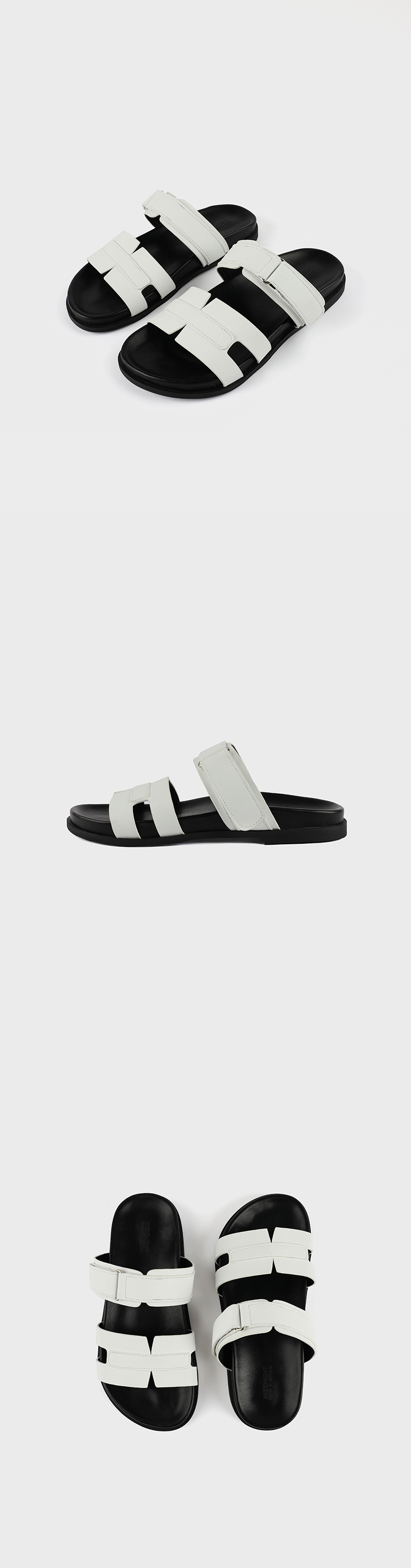 - 발등을 전체적으로 부드럽게 잡아주는 와이드한 슬라이드 샌들 - 벨크로 형태의 발등 스트랩으로 간편한 핏 조절 - 유연하고 부드러운 라텍스 쿠셔닝으로 활동적이고 편안한 착화감 - 미니멀한 디자인으로 다양한 아웃핏과 매치되는 높은 활용도