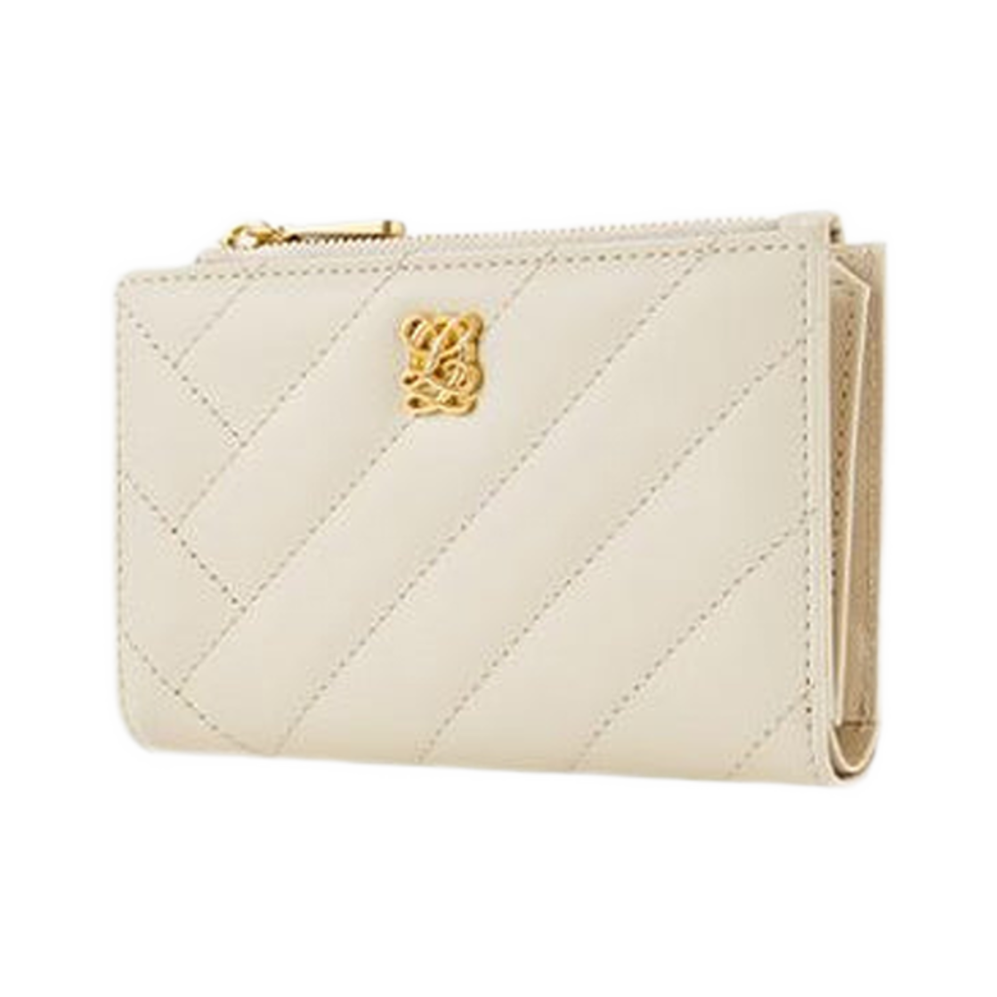 루이까또즈 L 퀼팅 레더 바이폴드 미디움 지퍼 지갑 베이지