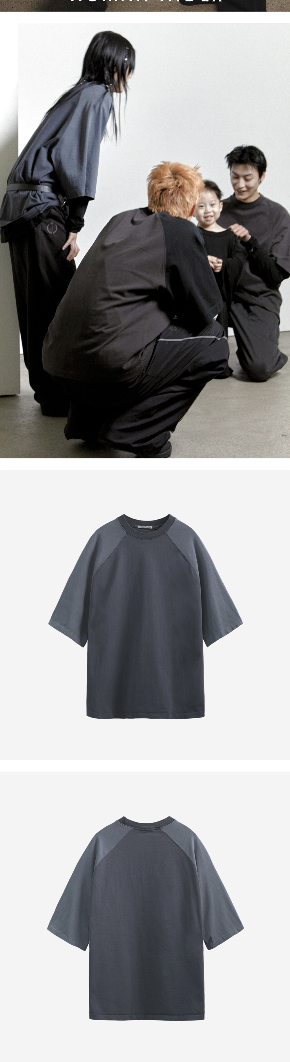 human raglan 1/2 mock tee * 탄탄한 조직감의 1/2 코튼 티셔츠 * 가먼트 다잉 및 워시 가공으로 부드러운 표면촉감 * 래글런 티셔츠 베이스로, 라운드 넥과 모크넥 사이의 오리지널 패턴으로 해석한 세련된 실루엣 2 - 4 size 각 사이즈 100 / 103 / 105 사이즈감. 신장 기준, 2 - 4 사이즈 각 170초반 / 170중반 / 180초반 착용시 적당히 넉넉한 실루엣으로 착용할 수 있습니다. * 기호에 따라 업사이징 가능
