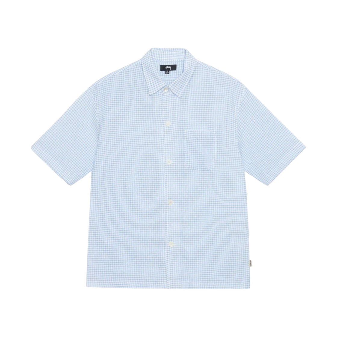 Stussy Boxy Flat Hem Crinkled Shirt Blue Check