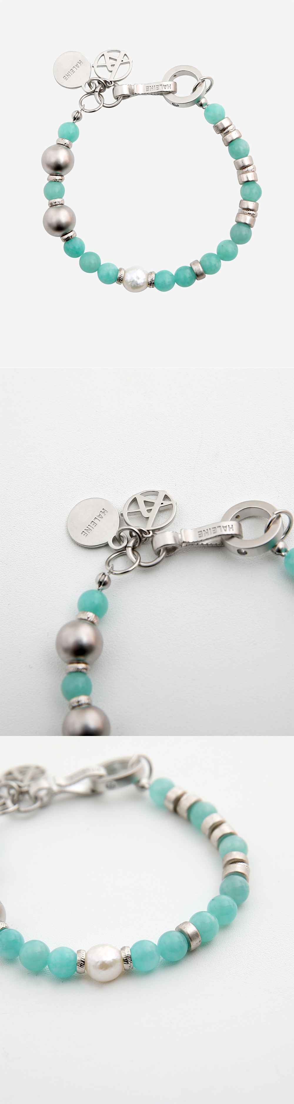 은은한 그라데이션의 천연석과 메탈을 믹스한 디자인의 팔찌입니다. 단품 및 레이어드 모두 활용도가 높은 제품입니다. *천연 원석 특성상 개체 차이가 있을 수 있는 점 참고 부탁드립니다._x000B_ - DETAIL - 로고 메탈 참