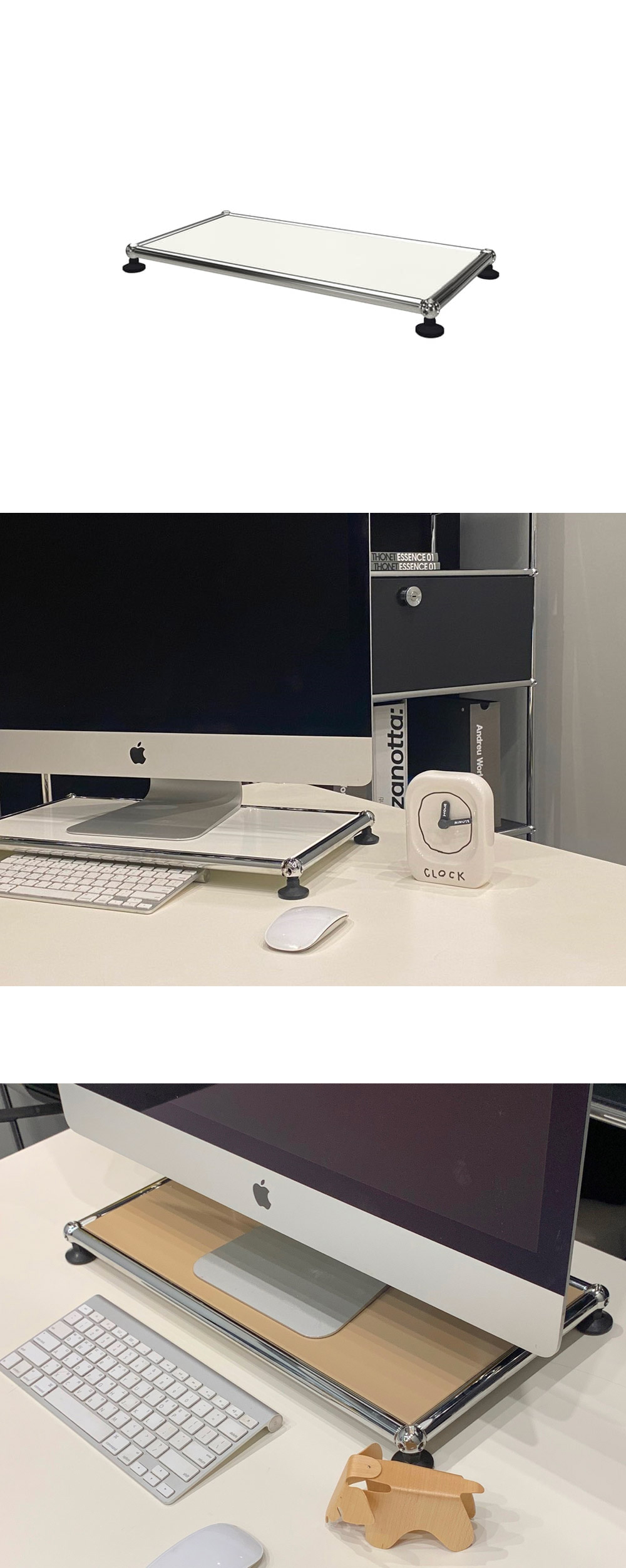 모니터 스탠드로 사용할 수 있는 모듈입니다. 하단 공간에 키보드, 마우스 등 간단한 소지품을 수납할 수 있어 효율적으로 활용이 가능합니다.