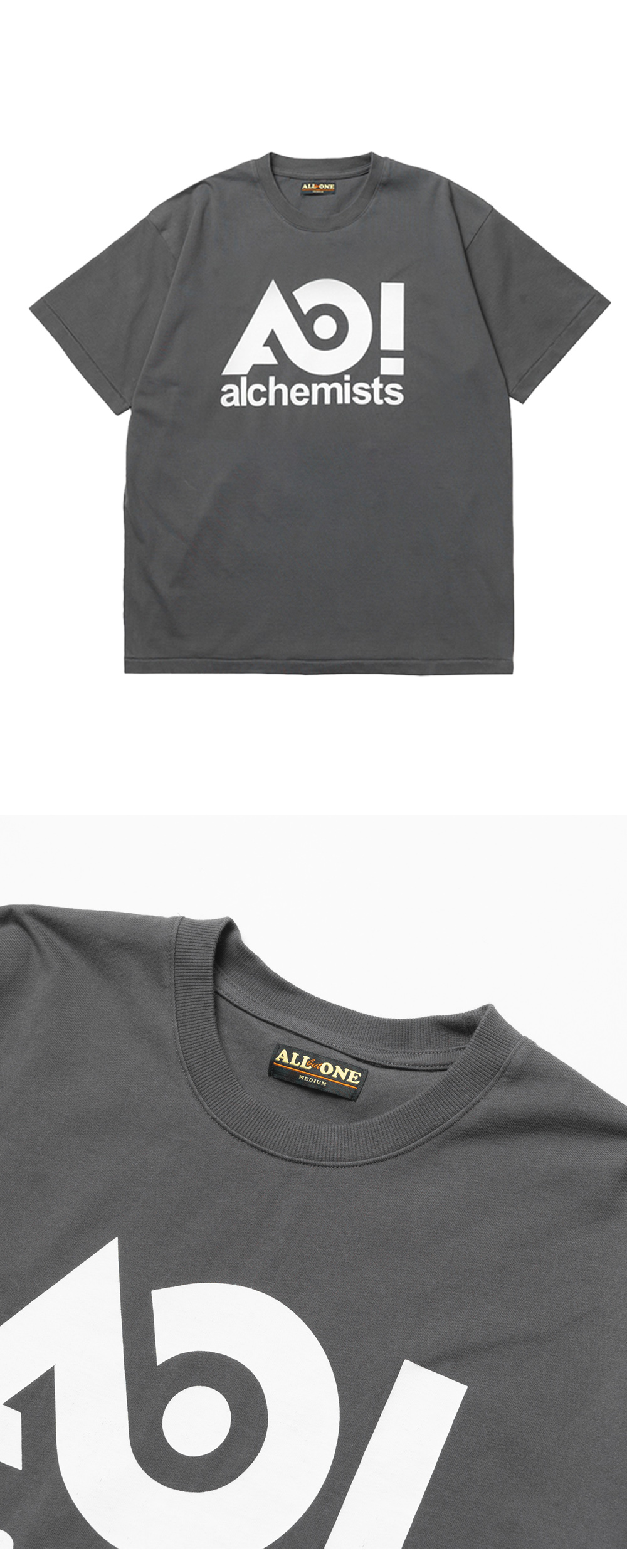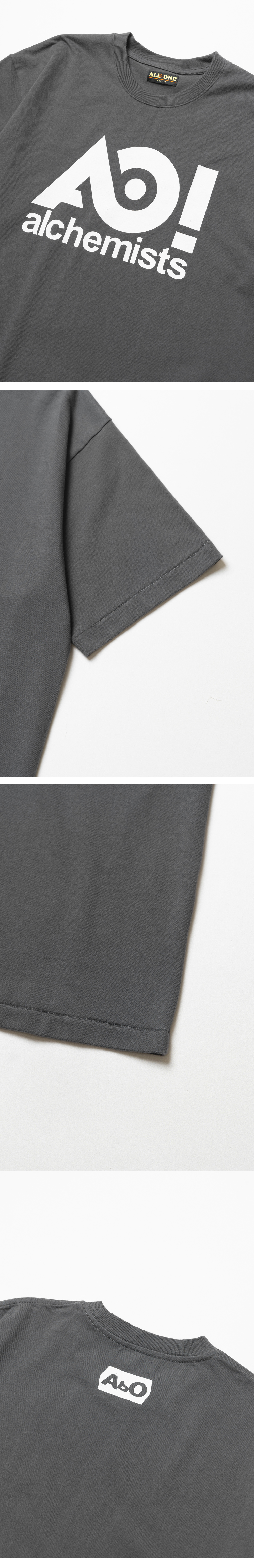 ABO Alchemy T-Shirt Dust Black 에이비오 알케미 티셔츠 더스트 블랙 ABO의 시그니처 아트워크가 돋보이는 반팔 티셔츠 30수 2합의 두께감 있는 코튼 소재 사용 소매, 밑단 싱글 스티치 마감 디테일 어깨 부분 체인 스티치 마감 후면부 상단에 브랜드 네임 로고 프린팅 디자인