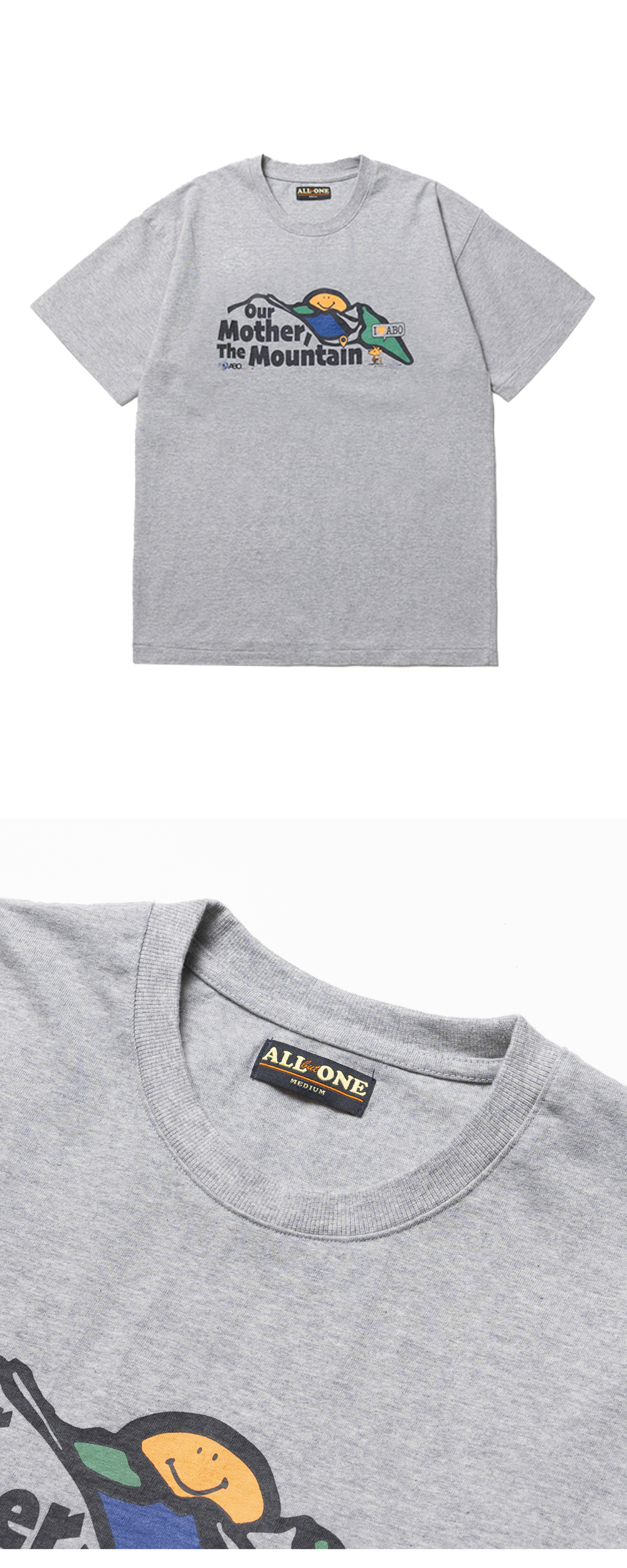 ABO Mother T-Shirt Melange Gray 에이비오 마더 티셔츠 멜란지 그레이 ABO의 시그니처 아트워크가 돋보이는 반팔 티셔츠 30수 2합의 두께감 있는 코튼 소재 사용 소매, 밑단 싱글 스티치 마감 디테일 어깨 부분 체인 스티치 마감 후면부 그래픽 프린팅이 특징