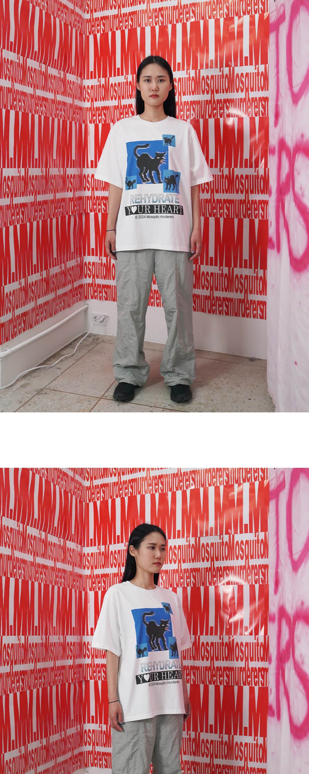 167cm(5’5”) / 51kg(114lb) WEARS SIZE 1 - 목 늘어남을 방지하기 위한 넥라인 해리처리 - 갈라삼봉 봉제법으로 내구성이 우수하며 완성도 높은 실루엣 - 비침없이 부드러우며 구김에 강한 100% 면 텍스처 - 덤블워싱, 텐타 가공을 거쳐 오랜시간 착용 및 세탁시에도 옷의 변형을 최소화 - 벗겨지거나 바래지 않는 선명한 프린팅 Mosquito murderers의 모든 의류는 한땀 한땀 사람의 손으로 탄생됩니다. 세탁시 케어라벨을 확인해 주시고, 프린팅의 손상을 최소화 하기 위해 옷을 뒤집어 세탁하는 것을 권장합니다.