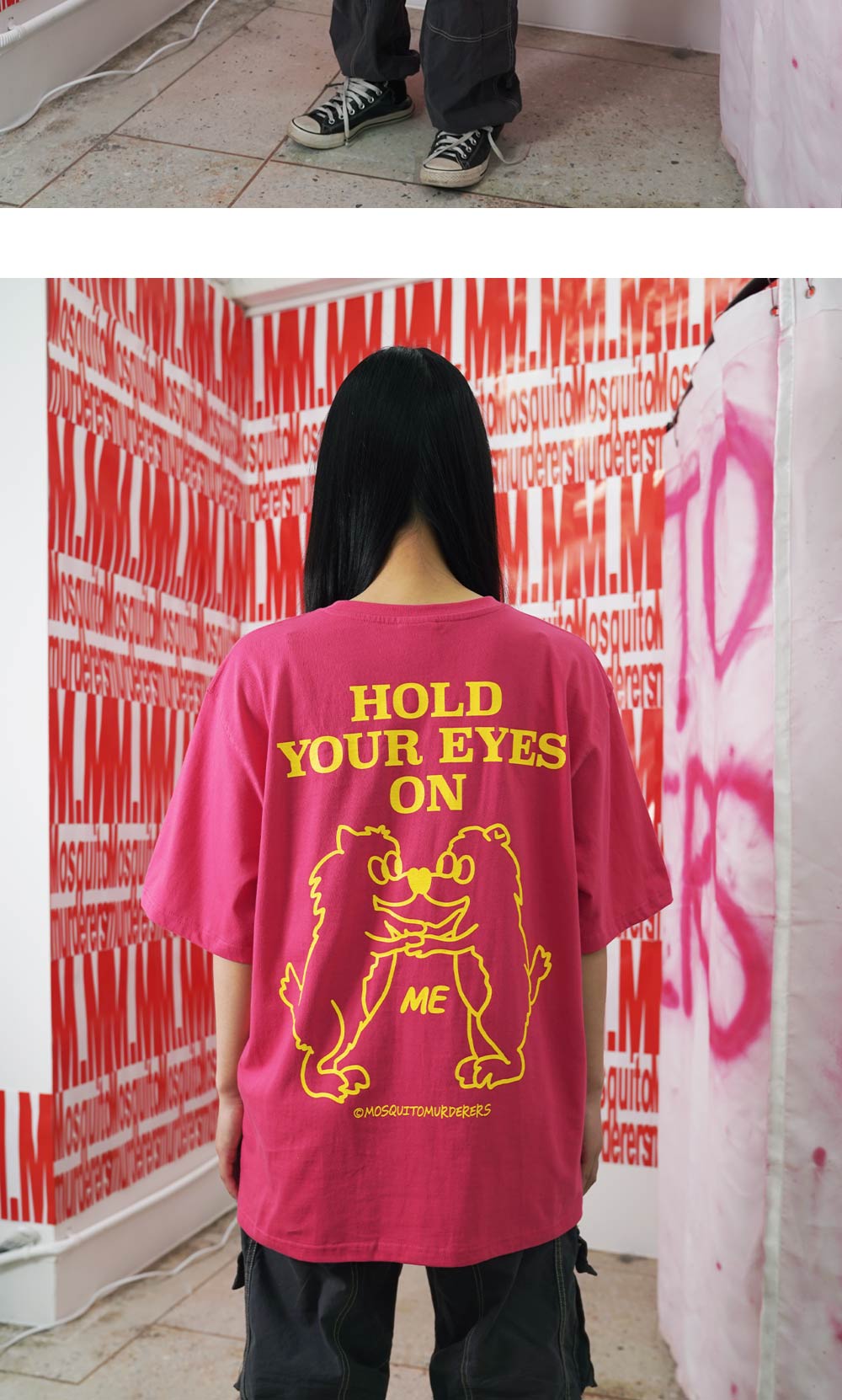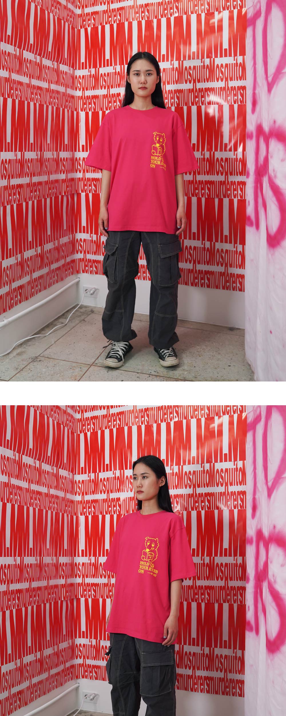 167cm(5’5”) / 51kg(114lb) WEARS SIZE 2 - 목 늘어남을 방지하기 위한 넥라인 해리처리 - 갈라삼봉 봉제법으로 내구성이 우수하며 완성도 높은 실루엣 - 비침없이 부드러우며 구김에 강한 100% 면 텍스처 - 덤블워싱, 텐타 가공을 거쳐 오랜시간 착용 및 세탁시에도 옷의 변형을 최소화 - 벗겨지거나 바래지 않는 선명한 프린팅 Mosquito murderers의 모든 의류는 한땀 한땀 사람의 손으로 탄생됩니다. 세탁시 케어라벨을 확인해 주시고, 프린팅의 손상을 최소화 하기 위해 옷을 뒤집어 세탁하는 것을 권장합니다.